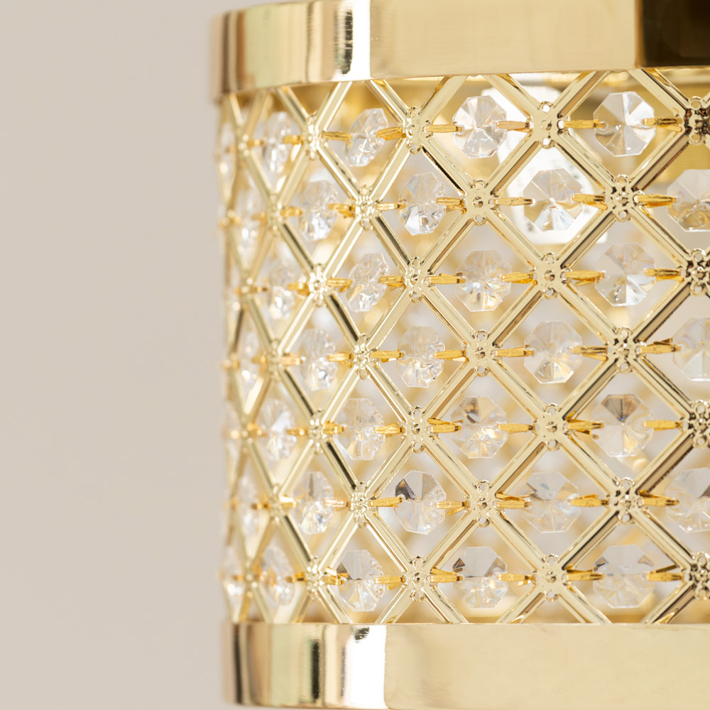 Elevate your home's style with the Hadley Gold Jewel Light Drum Lamp Shade. Its acrylic jewels add a glamorous, sophisticated touch, while intricate cutouts ensure even light distribution. This stunning lampshade is easy to install – no electrician required! It looks beautiful lit or unlit, making it a perfect statement piece. Measuring 16.5cm high and 24cm in diameter, it effortlessly updates your décor.