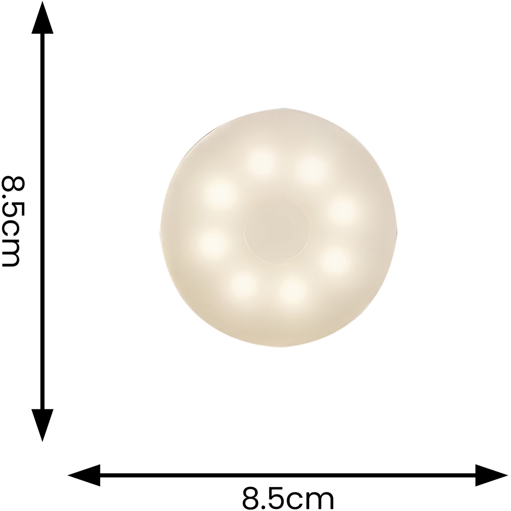 Illuminate your home with this six-pack of warm white LED spotlights. Enjoy cordless convenience thanks to the rechargeable batteries and effortlessly position them using the included sticky magnets – no electrician needed. These lights feature PIR motion sensors, activating automatically within a 3-meter range. Ideal for under-cabinet lighting, stairwells, wardrobes, shelves, and more. Each spotlight includes a 20cm USB charging cable. Achieve a full charge in one hour for approximately two hours of illumination.