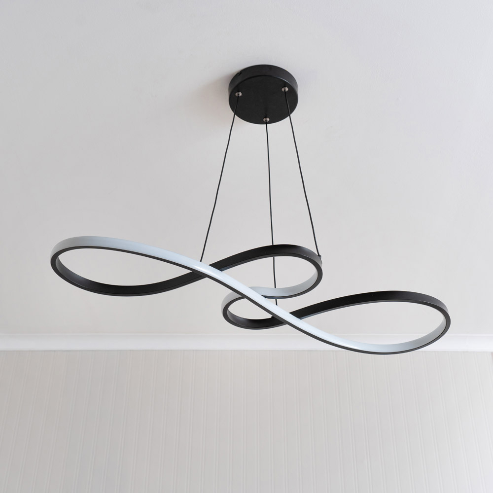Transform any room with the Infinity loop bar ceiling light. Delivering 4,000 lumens of light, it brightens your space with ease, while the elegant loop shape adds a sophisticated, architectural touch. Whether you're hosting or relaxing, this light fixture combines style and performance in one sleek design. Modern, energy-efficient, and perfect for any space that needs a little extra flair. The adaptable fitting means it can sit flush to your ceiling, or use the adjustable pendant feature to create a hanging bar that is ideal for dining tables or breakfast bars. The integrated LED bulbs come with a lifespan of 25,000 hours, meaning this statement lighting will last in any home. Dimensions: H120 x W81 x D28cm.