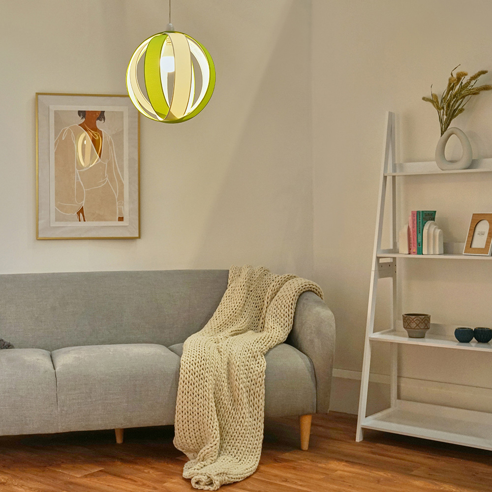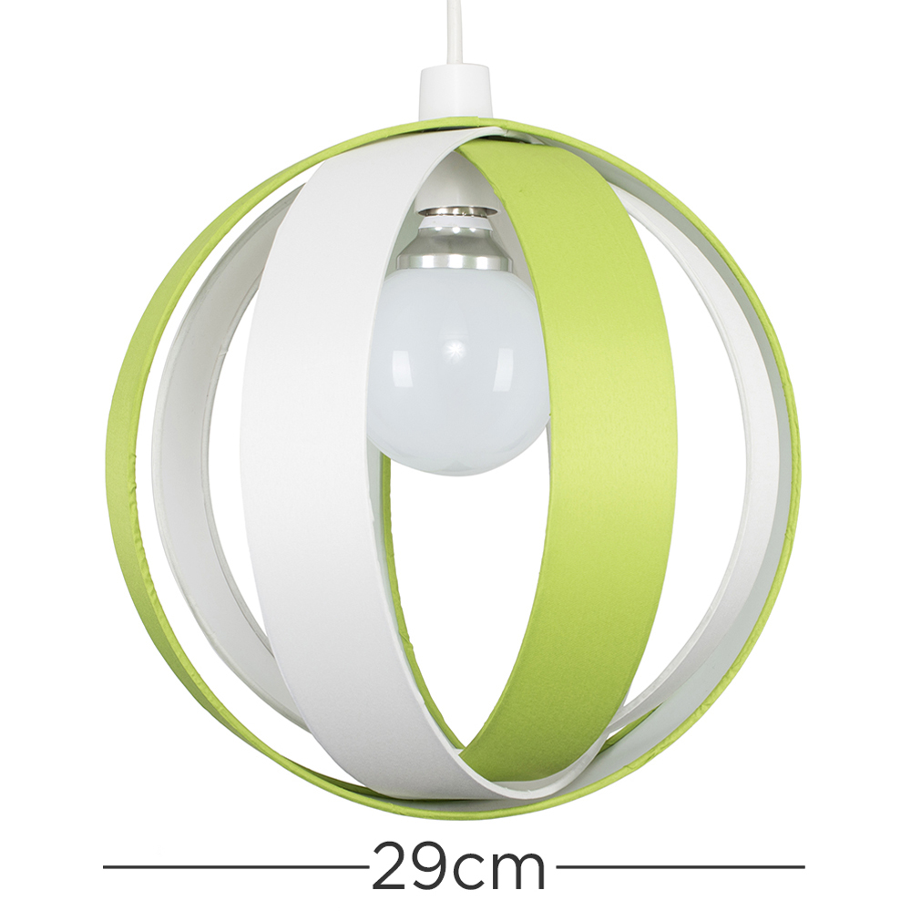 Update your home lighting with the ValueLights J90 Green Easy Fit Ceiling Light Shade. Its eye-catching moon cocoon design is formed from four circular layers. Easy to install onto any existing light fitting, no electrical wiring is needed. Just attach and shape the circular sections into a globe. The shade is designed for use with a maximum 10W bulb (LEDs recommended) and is unsuitable for traditional or halogen bulbs. Dimensions: H29 x Dia29cm. Note: Some self-assembly is required.