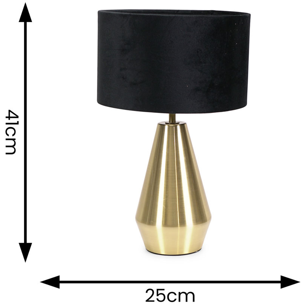 Enhance your home's ambiance with the Jax LED table lamp. This elegant lamp features a touch-activated on/off switch for effortless use and boasts a sophisticated antique brass finish complemented by a rich black velvet shade. Ideal for bedside or side tables, its tapered base adds a touch of class. Keep it looking its best with a simple dry cloth wipe. A 12-month warranty is included.