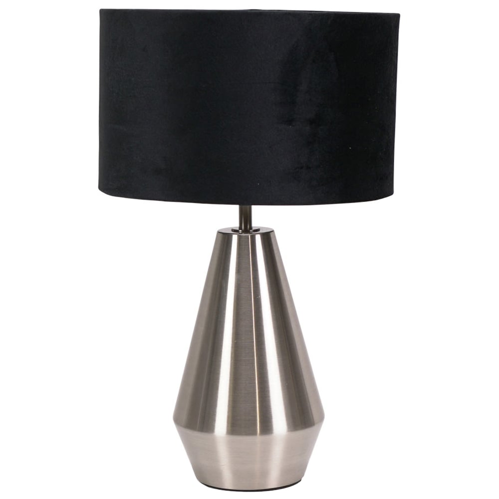 The Jax LED Table Lamp, in brushed chrome with a black velvet shade, offers a sophisticated touch to your space. Its tapered base and touch-activated on/off switch provide both style and convenience. Perfect for bedside or side tables, this lamp is easily cleaned with a dry cloth and includes a 12-month warranty.