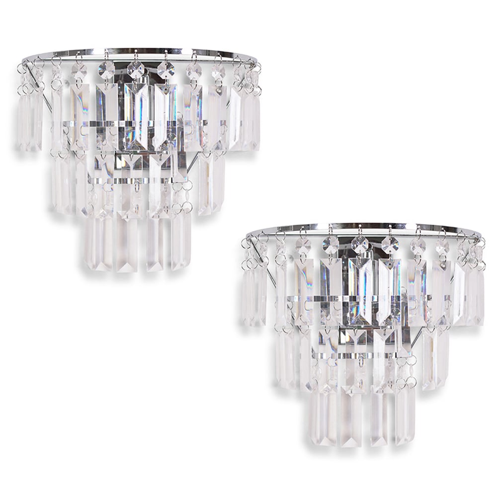 ValueLights Kelsks Acrylic Clear Jewel Droplet Chrome Wall Light with LED Bulb 2 Pack