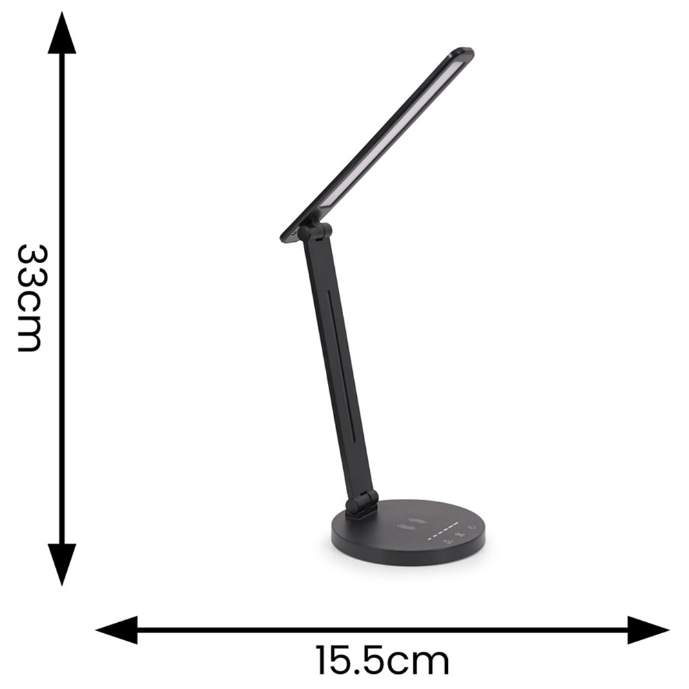 Elevate your workspace with this sleek black desk lamp featuring integrated wireless charging. Its dimmable LED light offers three colour temperatures—cool, natural, and warm—allowing you to customize your lighting for any task with a touch control. The perfect blend of style and functionality for the modern home office.