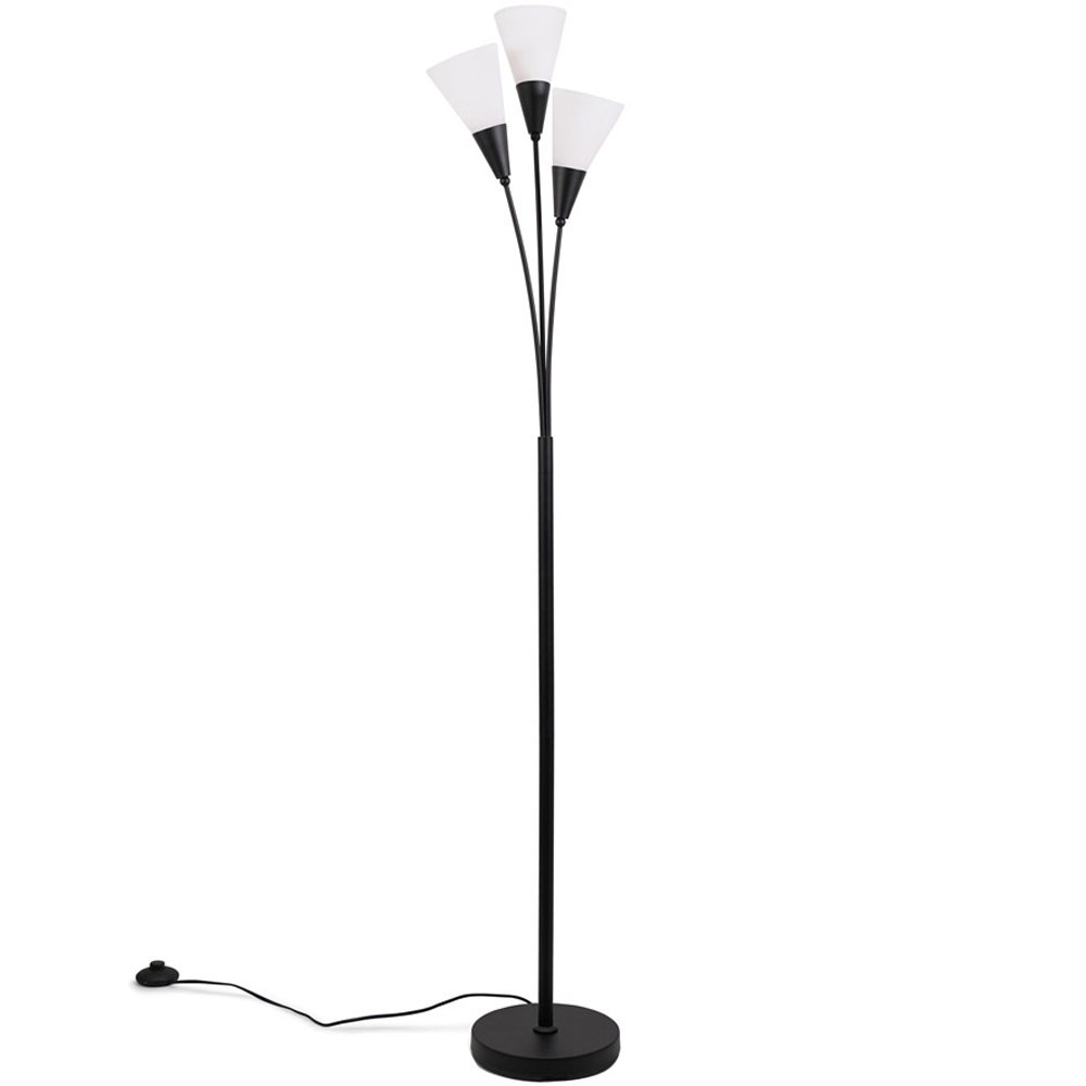 ValueLights Kristina 3 Way Frosted White Shade Black Uplighter LED Floor Lamp