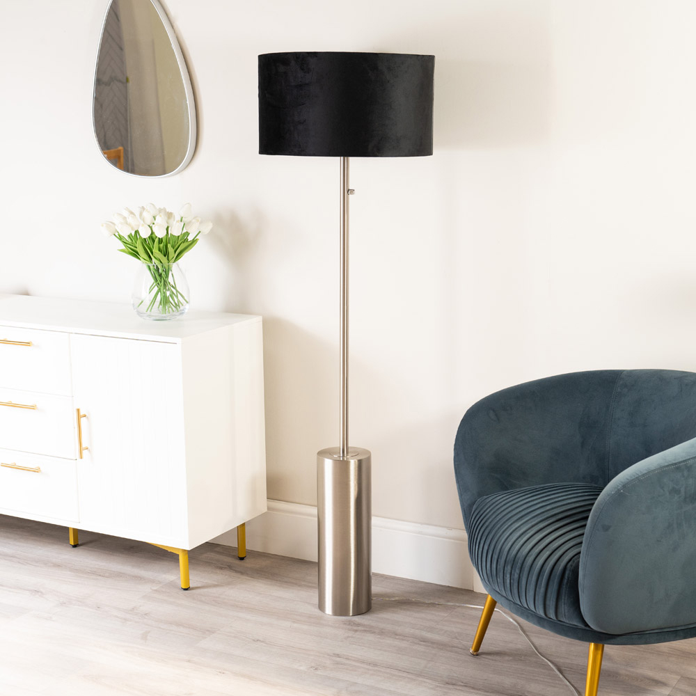 ValueLights Lexy Black Velvet Shade Chrome LED Floor Lamp