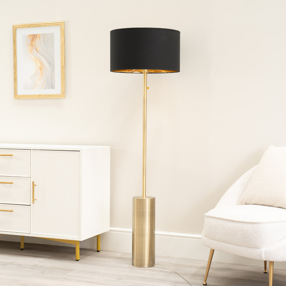 ValueLights Lexy Reni Black Shade Antique Brass LED Floor Lamp