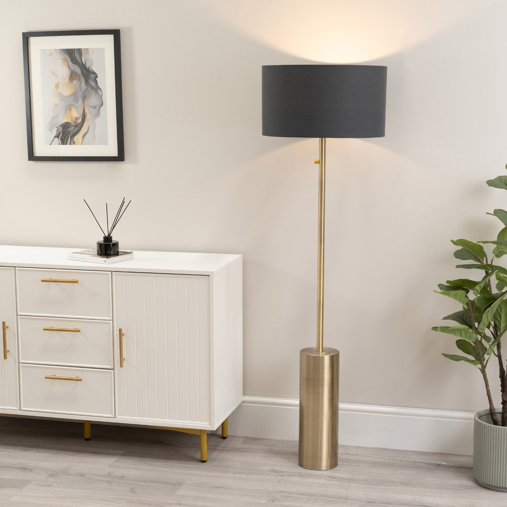 ValueLights Lexy Reni Charcoal Grey Shade Antique Brass LED Floor Lamp