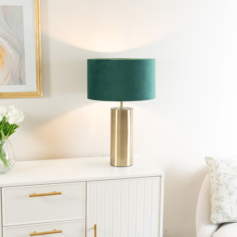 ValueLights Lexy Reni Forest Green Velvet and Antique Brass Shade Touch LED Table Lamp