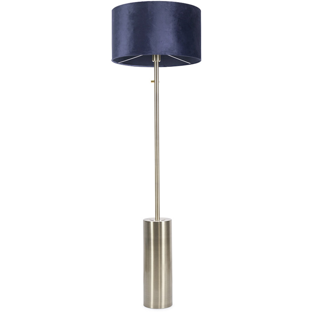 ValueLights Lexy Reni Navy Blue Velvet Shade Antique Brass LED Floor Lamp