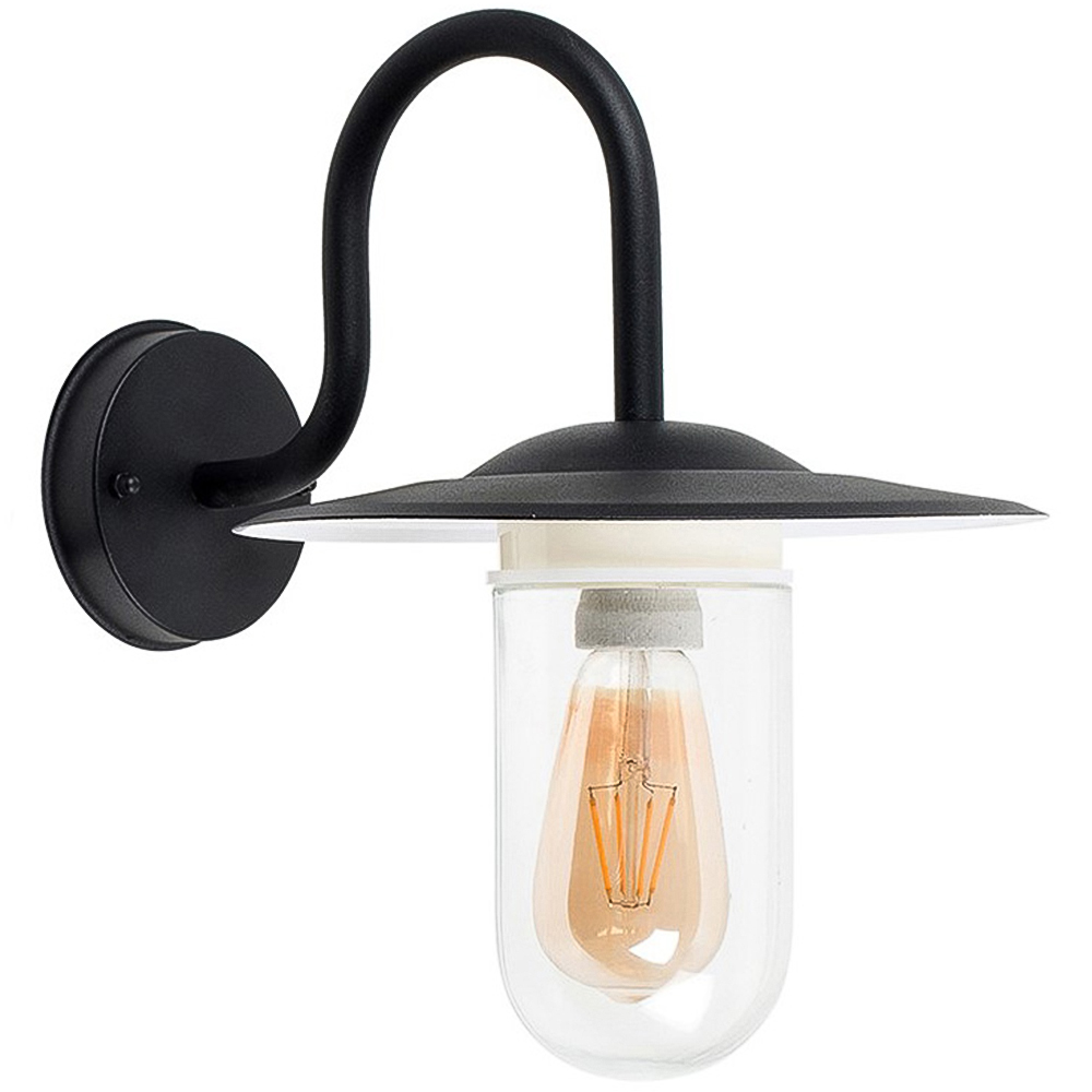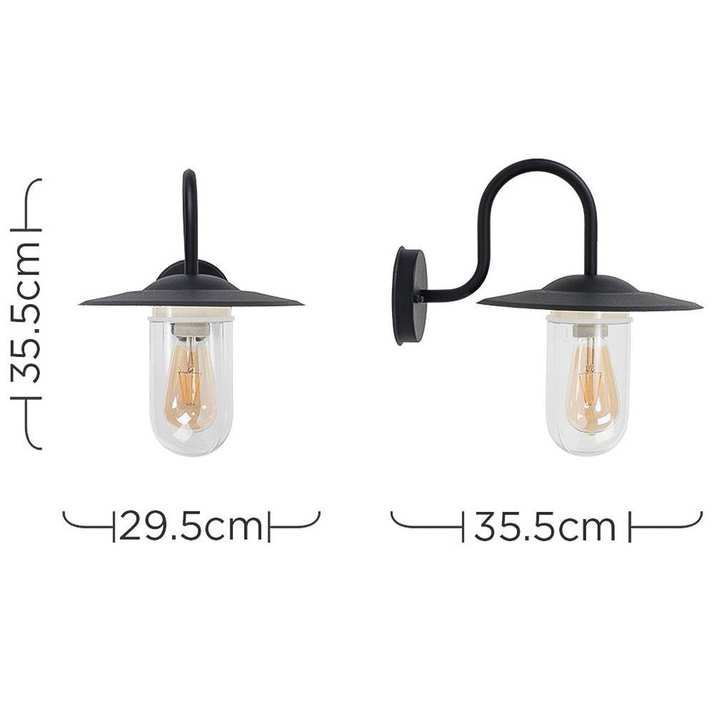 Enhance your outdoor living areas with the Lynton Black Outdoor Wall Lantern. This stylish swan-neck design is perfect for gardens, porches, patios, garages, and more. Its IP44 rating ensures weather resistance for reliable performance year-round. The included four-watt amber LED bulb and easy-to-install kit make setup a breeze, adding both ambiance and security to your outdoor spaces.