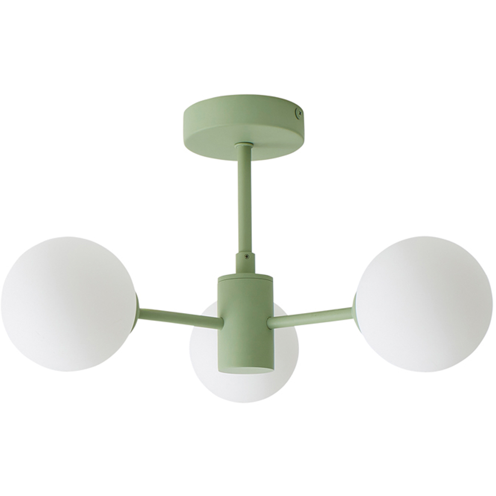 ValueLights Marlow 3 Arm Sage Green Opaque Glass Globe LED Ceiling Light