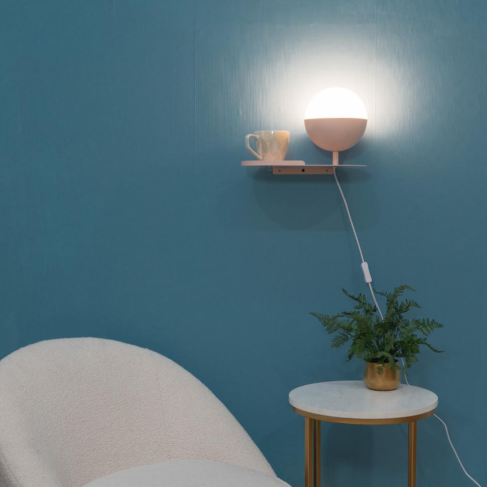 Elevate your home's ambiance with this charming wall light. Its blush metal shelf and opal glass globe shade cast a warm, inviting glow, perfect for creating a cosy atmosphere. The opal glass shade offers a warm glow of light, complementing the metal base. The shelf provides a stylish display space for cherished ornaments, photos, and decorative items. This piece is sure to become a captivating focal point, adding both light and personality to your interior.