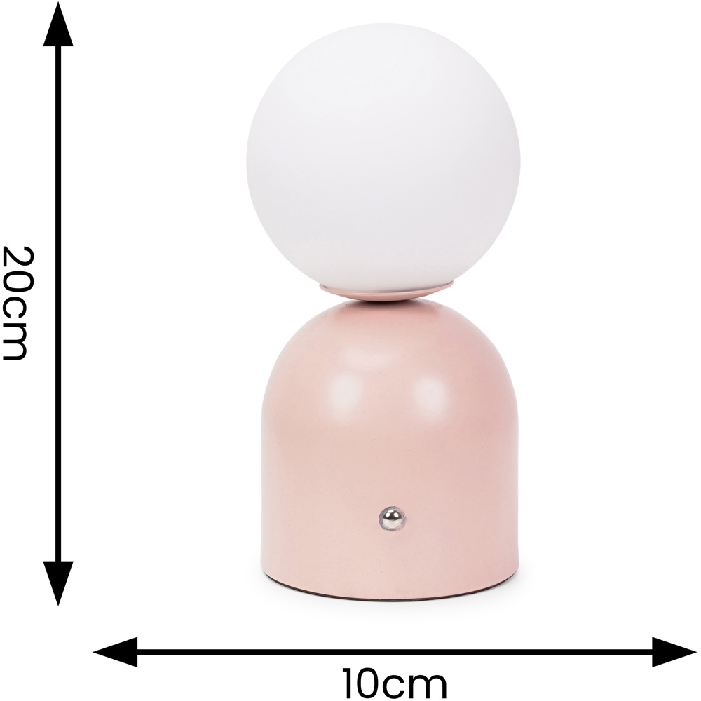 This cordless table lamp casts a chic and cosy glow, perfect for brightening any room. Its pastel base comes in blush pink, sage, or oyster grey, complemented by a warm-toned opal glass globe shade. Three colour settings and dimming capabilities ensure the perfect ambiance. A 1m USB charging cable is included, a 4-hour charge provides approximately 4 hours of light. Matching items are also available.
