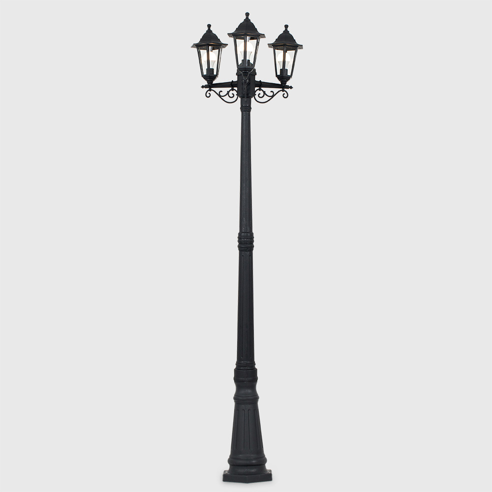ValueLights Mayfair Black 3 Way Outdoor Lamp Post Light