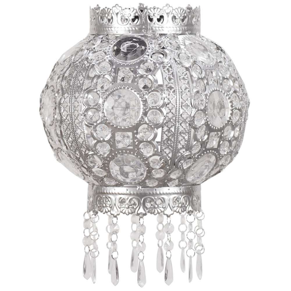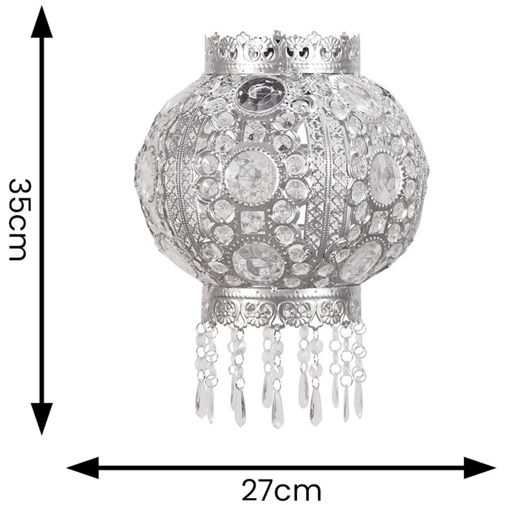 ValueLights Moroccan Bazaar Style Silver Easy Fit Chandelier Ceiling Light Shade with Jewel Droplets