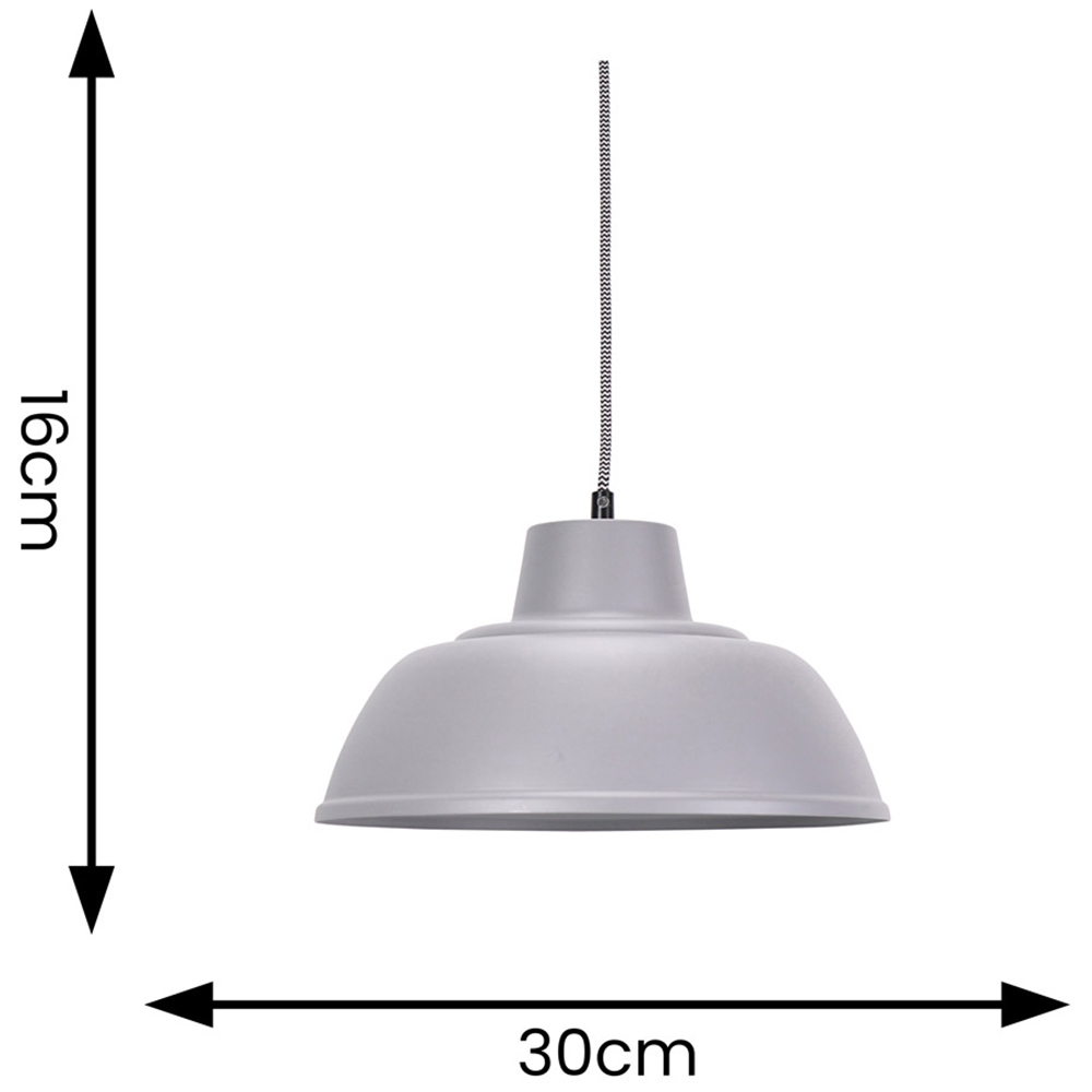 Illuminate your space with the Morris Stone Grey Metal Drop Hanging LED Pendant Light. This stylish pendant blends mid-century industrial design with modern aesthetics, its deep dome shade creating a timeless appeal. The matte grey finish adds a touch of contemporary flair, making it a perfect focal point in any room – from dining areas and hallways to bedrooms. Its focused light creates a warm and inviting glow, complementing various décor styles, from modern and minimalist to vintage-inspired interiors. Easy to clean with a dry cloth, and backed by a 12-month warranty.