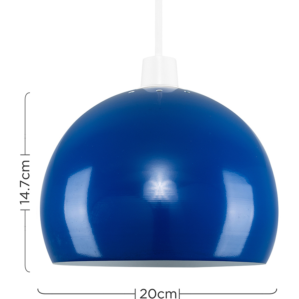 Bring a touch of New York coffee house chic to your home with the Navy Blue Arco Mini Metal Pendant Light Shade. This petite retro-style light boasts a sleek navy blue finish and a modern arco dome shape, perfect for adding character to kitchens, dining rooms, living rooms, bedrooms, or hallways. Effortlessly install it into any standard light socket, no extra wiring needed. At H14.7 x D20cm, it's the ideal size for any space.