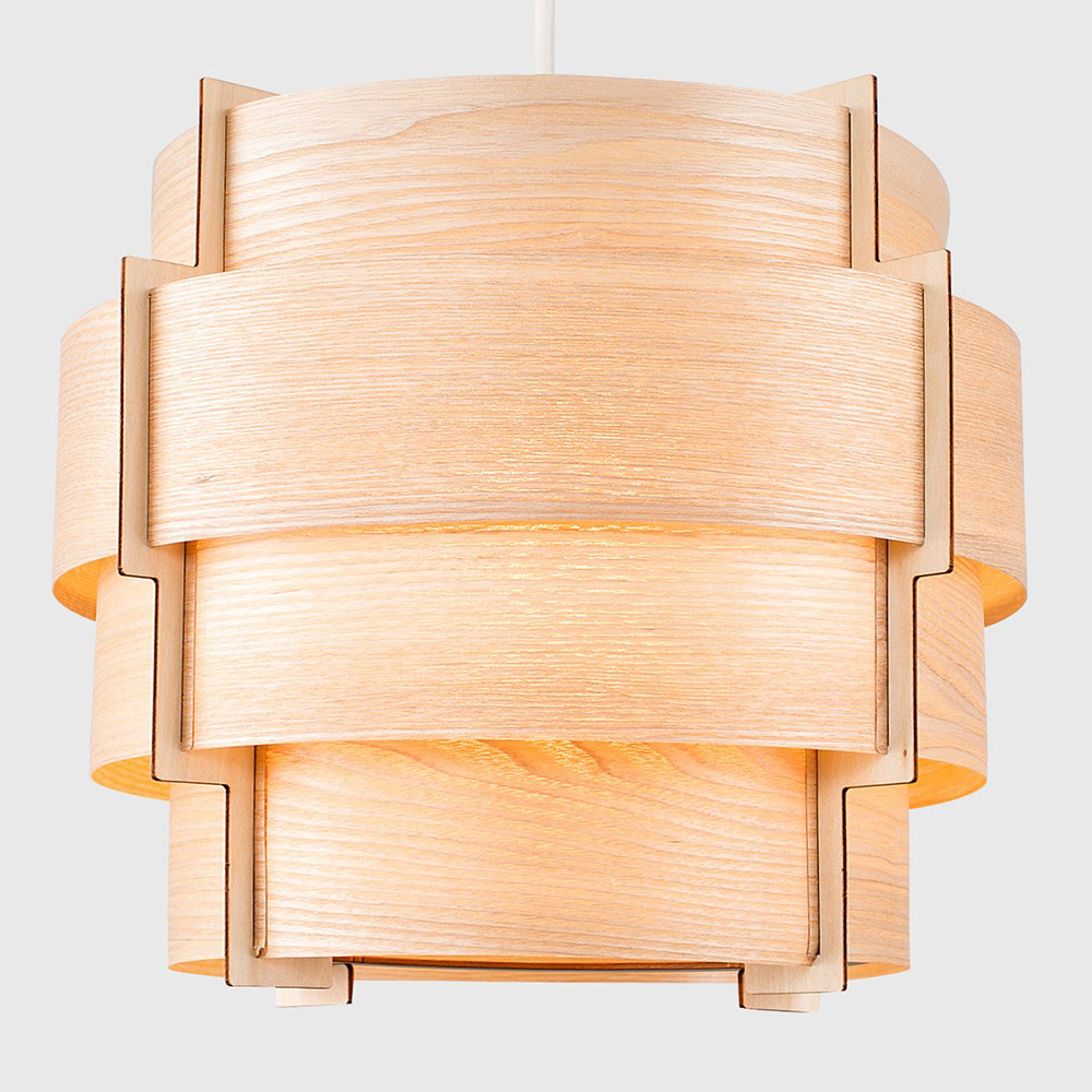 Enhance your home's ambiance with the Persia Veneer Wood Stepped Lamp Shade. This layered, stepped drum shade adds depth and visual interest, creating a captivating focal point in any living area. Simply attach it to your existing ceiling socket for an instant upgrade.