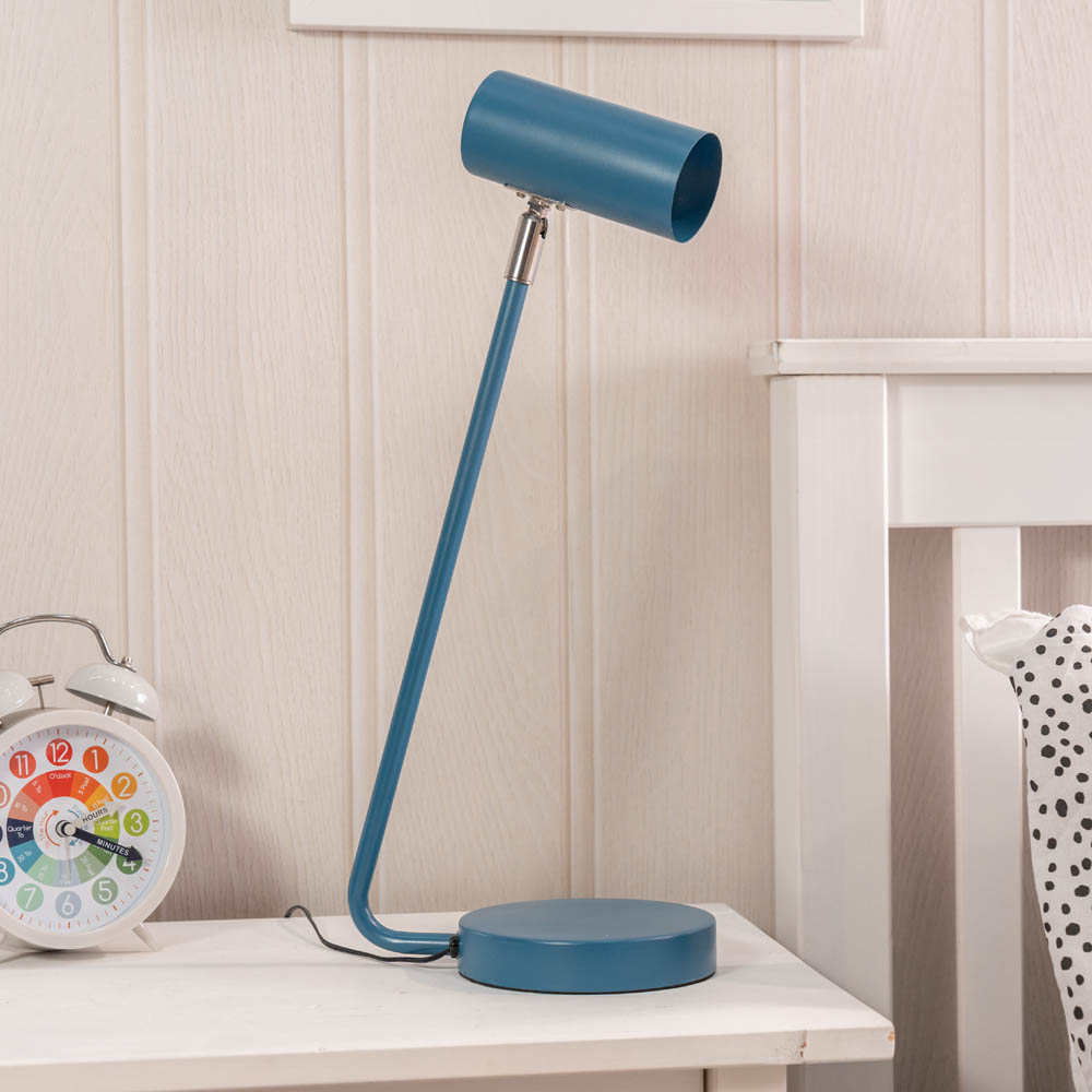 The Petrol Blue Desk Table Lamp adds a splash of colour to your workspace. Its adjustable head and braided flex let you direct light precisely where you need it, making it perfect for home offices, studies, or student accommodation. The classic design complements any décor.