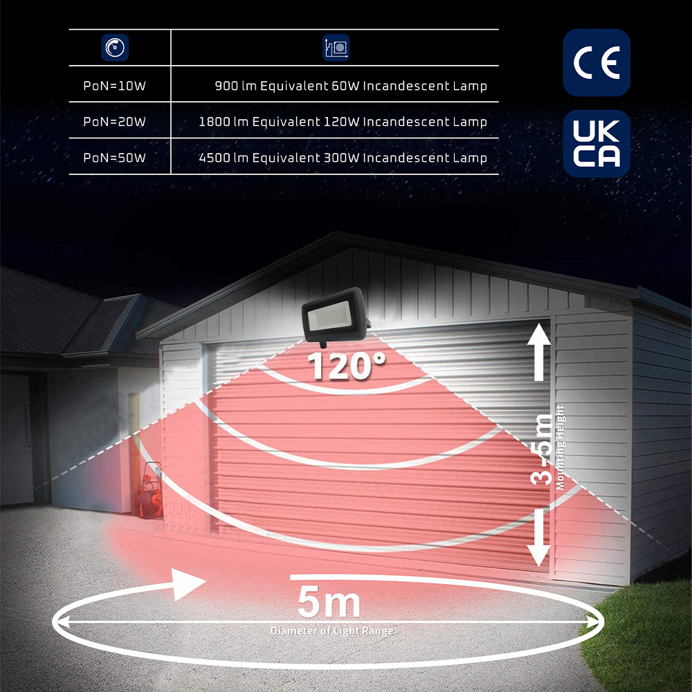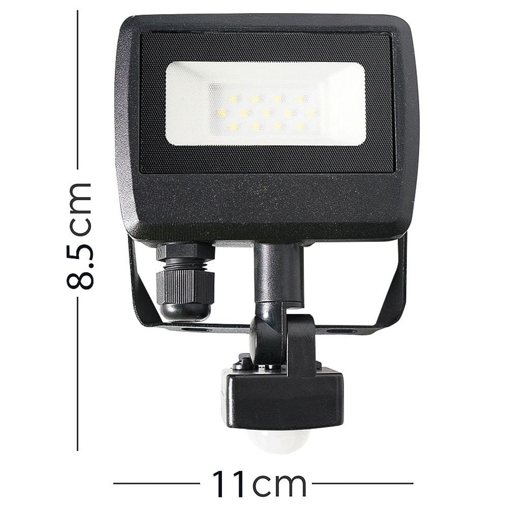 The sleek, black ValueLights Slimline PIR LED Garden Wall Floodlight enhances any exterior. This contemporary 10W floodlight boasts Samsung's cutting-edge technology, delivering brilliant 6500K illumination. Its slim profile blends seamlessly into any setting, while the IP65 rating guarantees weather resistance for lasting performance in residential or commercial applications. Enjoy superior lighting and reliable protection for your property.