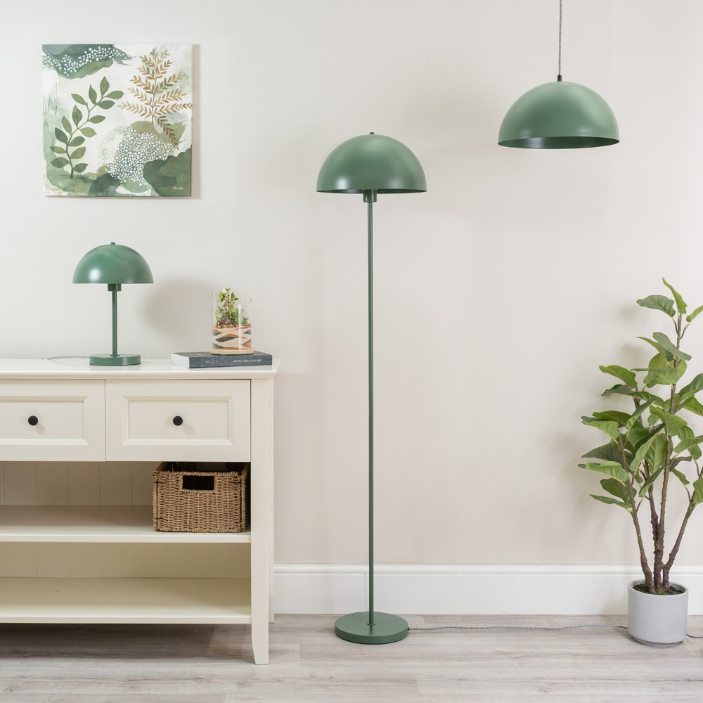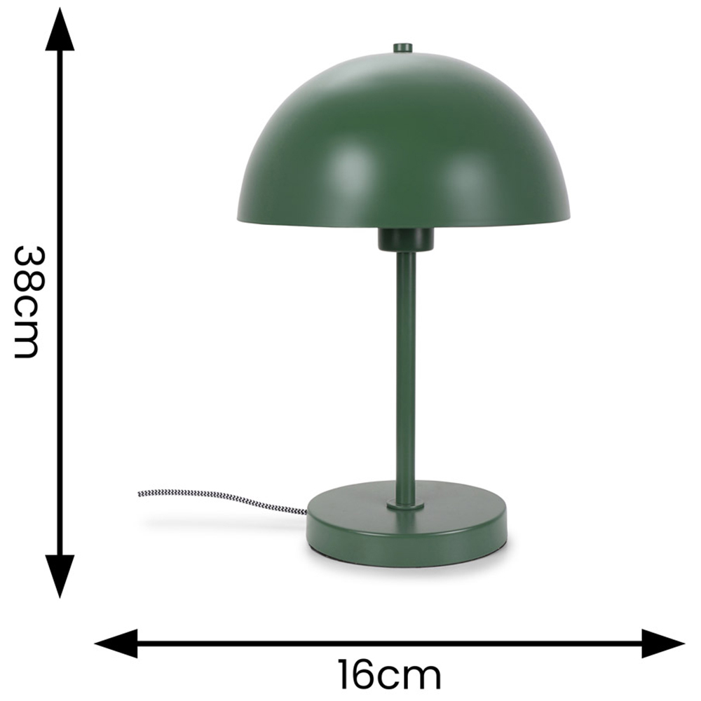 Enhance your home's ambiance with the Stassi Forest Green Mushroom Dome LED Table Lamp. This stylish table lamp boasts a unique mushroom-shaped dome shade, complemented by a mid-century industrial design. Its sleek stem and stable base provide a sophisticated silhouette, while the integrated LED bulb casts a warm, inviting glow. The matte finish is easy to clean with a dry cloth, and the lamp is covered by a one-year warranty.