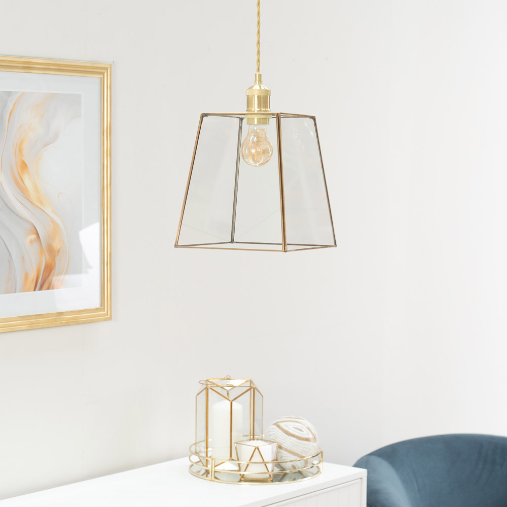 Illuminate your space with the Susie Gold Glass Pendant Shade. This antique brass pendant shade features a classic lantern design with elegant gold detailing, brightening your home naturally by day and brilliantly at night. Perfect for living rooms, hallways, or bedrooms, this easy-fit shade is designed for standard ceiling pendants, ensuring simple installation. Maintain its beauty with a gentle dry wipe. Backed by a 12-month warranty.