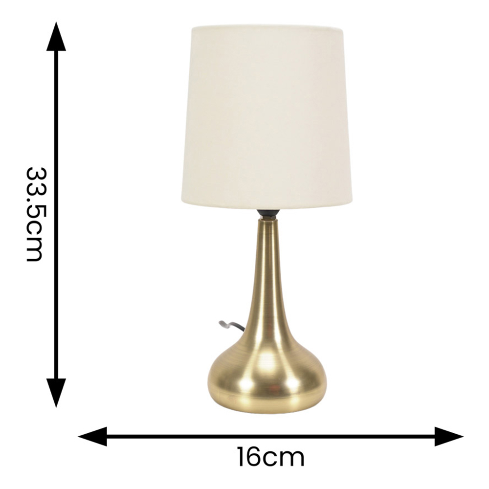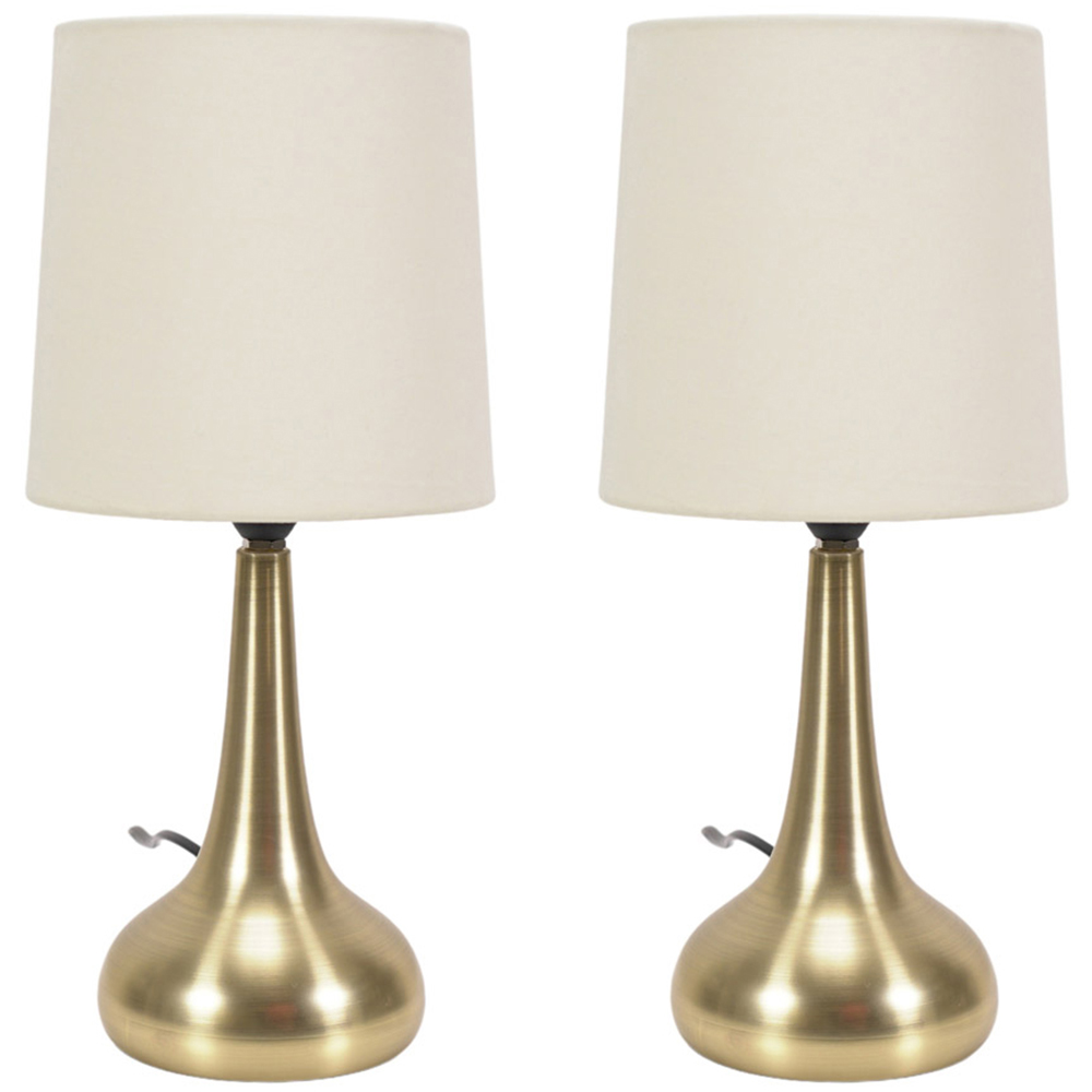 ValueLights Teardrop Gold Touch Table Lamp with Cream Shade and Bulb 2 Pack