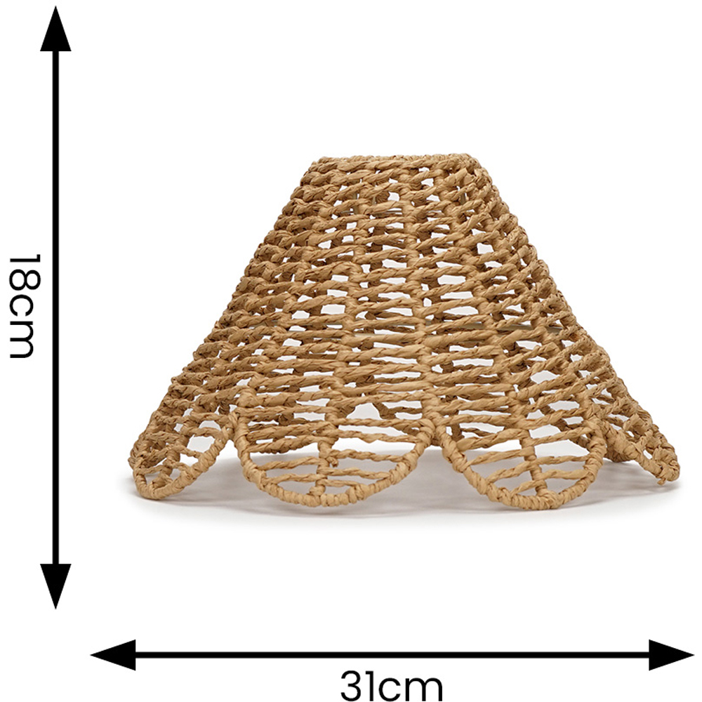 Add bohemian elegance to your home with the Vine Rattan Flower Pendant Lamp Shade. This charming lamp shade is crafted from natural rattan, shaped like a flower, and easily attaches to your existing light fitting, no electrical installation is required. Its versatile design complements modern and traditional interiors. Dimensions: 18 x 31cm. Please note: Ceiling rose and flex are not included.