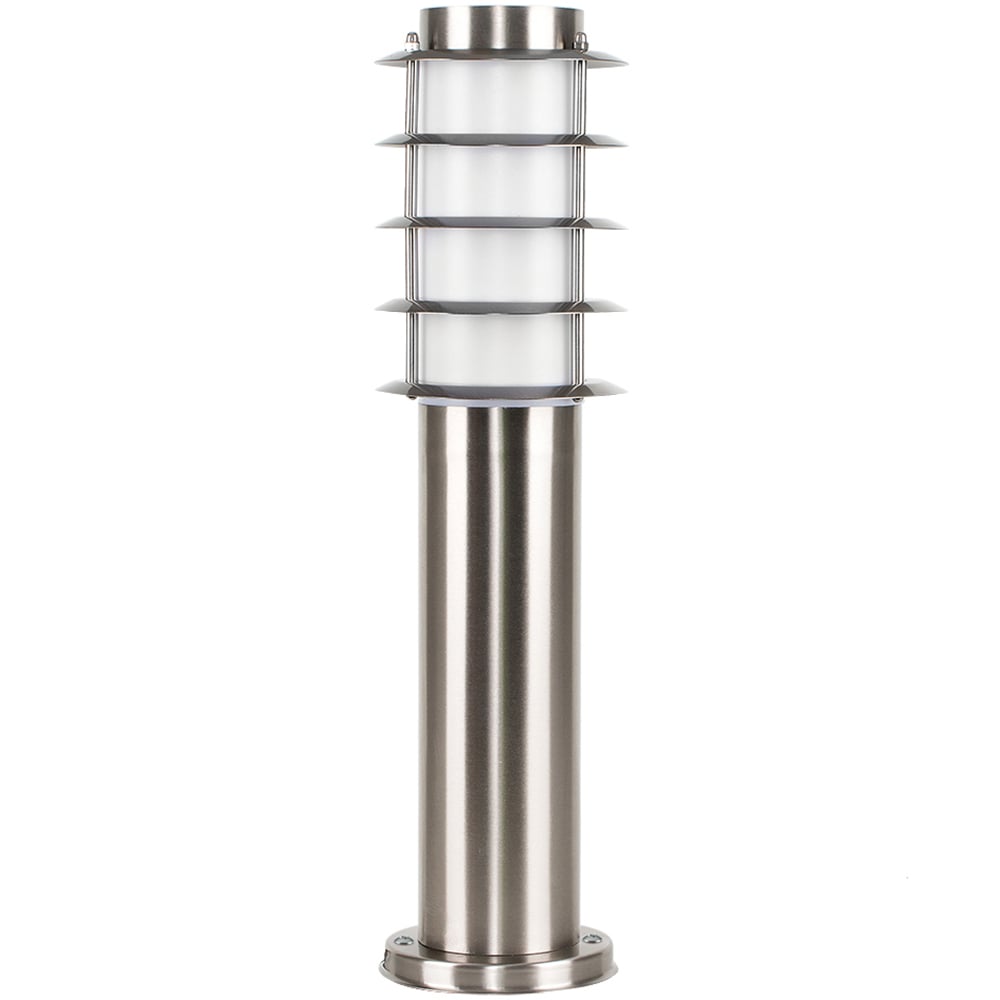Add a touch of modern elegance to your garden with the Wharf Set of four silver warm white bollard lights. Crafted from stainless steel with frosted white shades, these stylish outdoor lights are perfect for illuminating pathways, borders, or other features. Their contemporary design and high-quality, weatherproof (IP44 rated) construction provide both security and ambiance. Ready to install, each light includes a 4W warm white LED bulb.