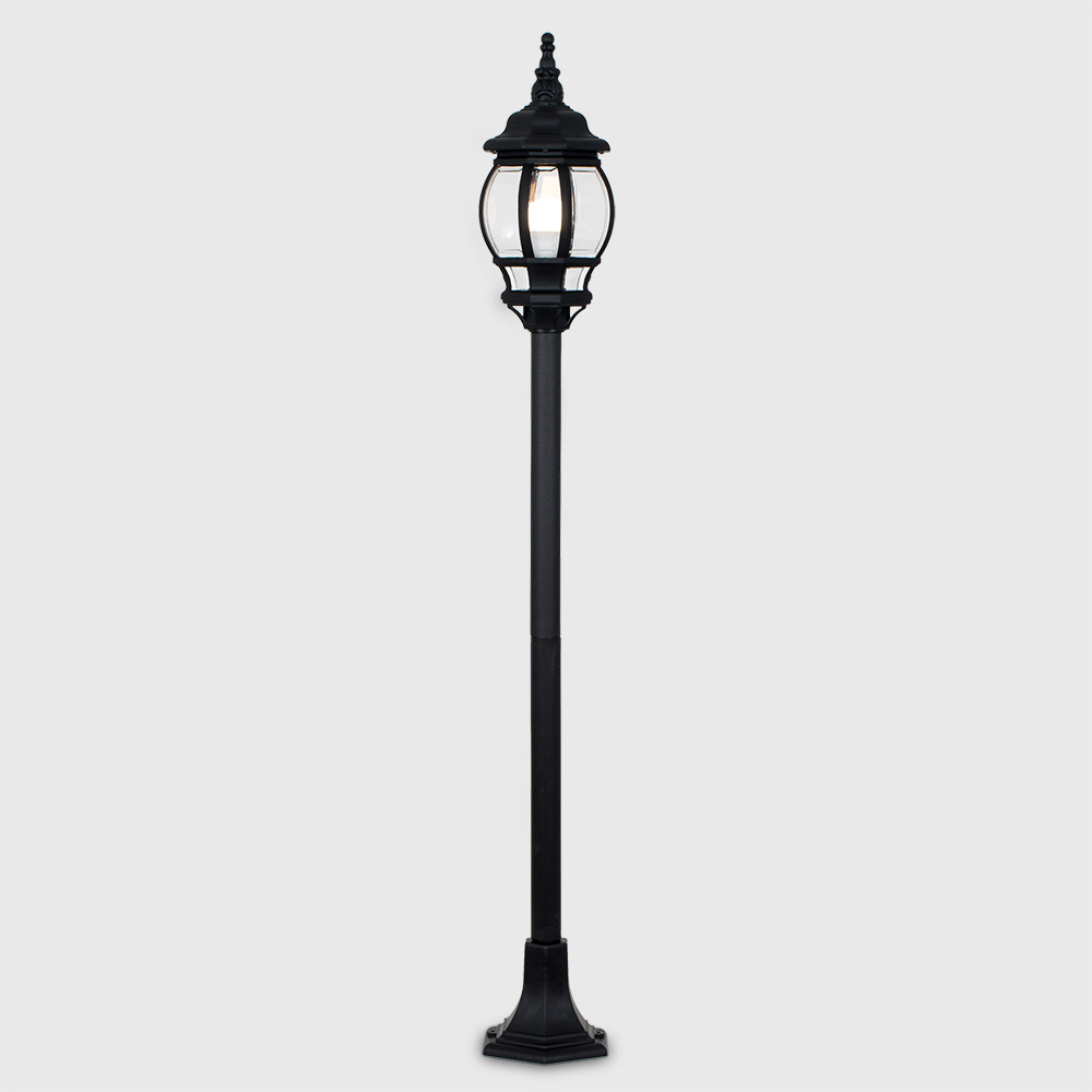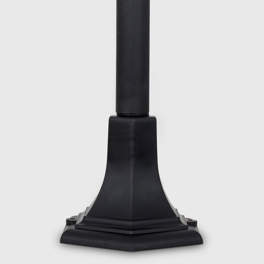 The Windsor Black Outdoor Bollard Light adds instant style and illumination to your outdoor spaces. Crafted from durable, weather-resistant black resin, this traditional-style light features clear, bevelled shade panels. The included six-watt warm white LED bulb provides a welcoming glow, perfect for gardens, patios, courtyards, and driveways. With its IP44 rating, it's fully certified for outdoor use, ensuring lasting performance.