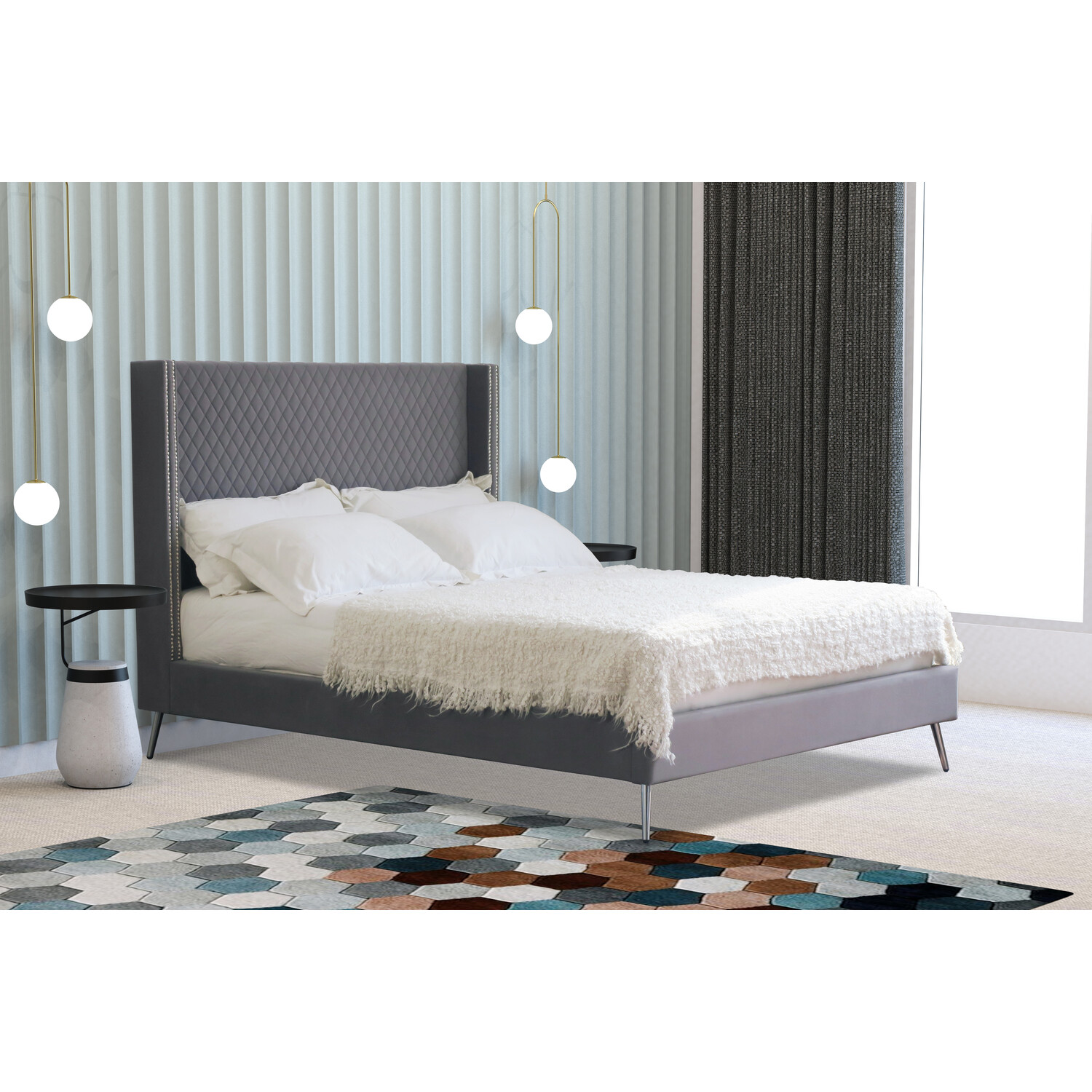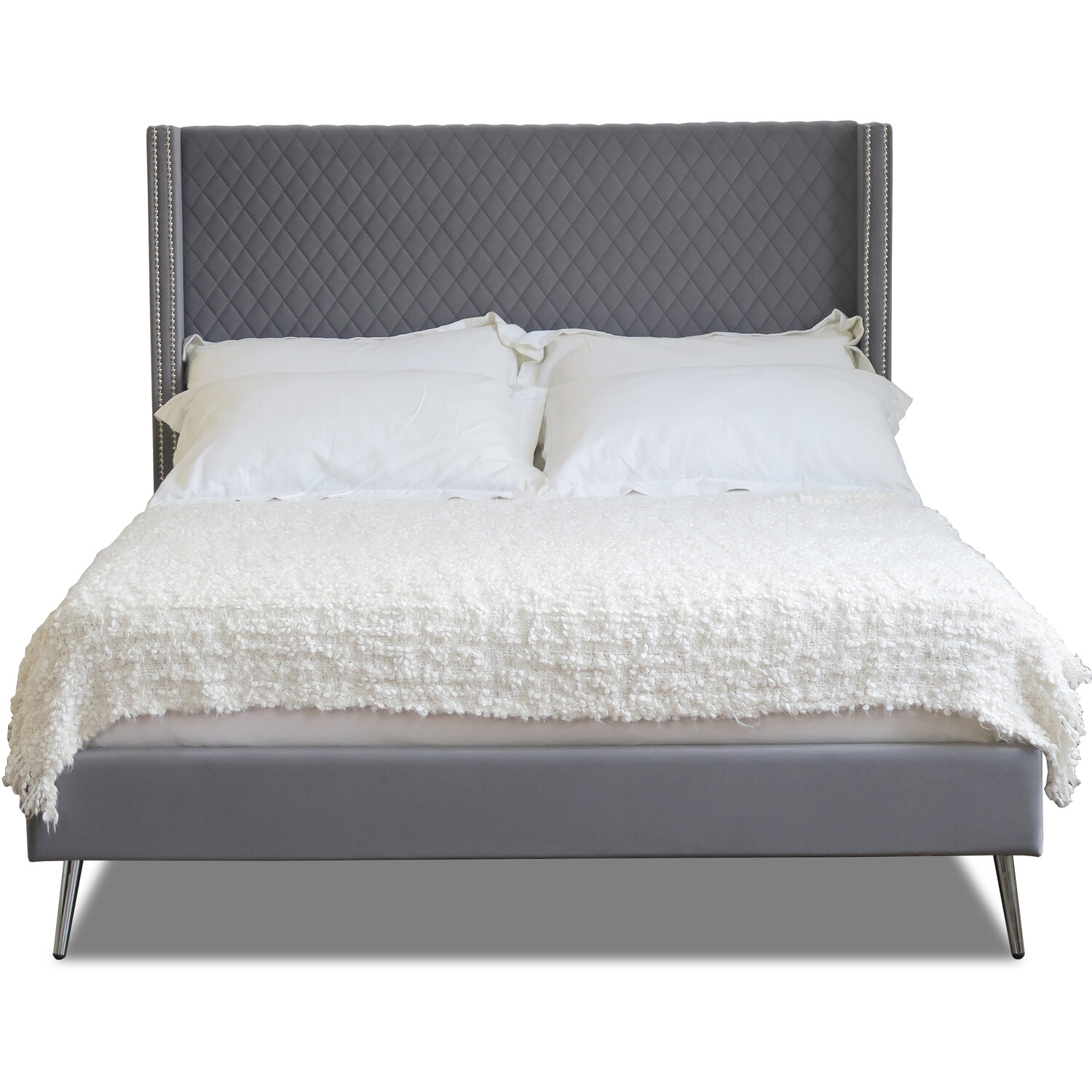 Indulge in luxurious comfort with the Vanessa bed, a sophisticated addition to any bedroom. Its modern high headboard, accented with metallic beads and quilted for a sumptuous feel, is upholstered in a textured grey fabric. The sprung wood slats provide exceptional comfort, complemented by coordinating metal legs for a truly opulent look. Prepare for a restful night's sleep in elegant style.
