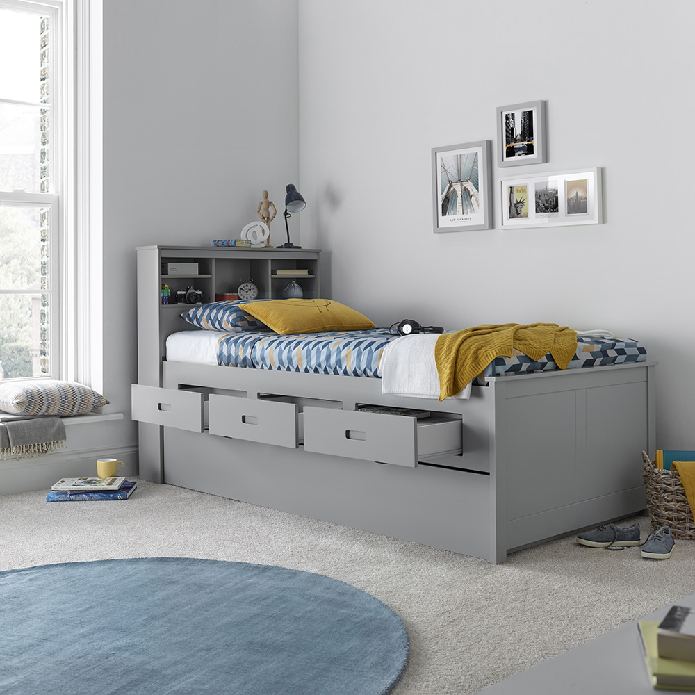 Maximise your space with the Bedmaster Veera Grey Storage Guest Bed, a stylish and practical solution for bedrooms and guest rooms alike. Featuring a simple yet stylish design, this modern, space-saving design not only looks great but also offers clever storage solutions.
