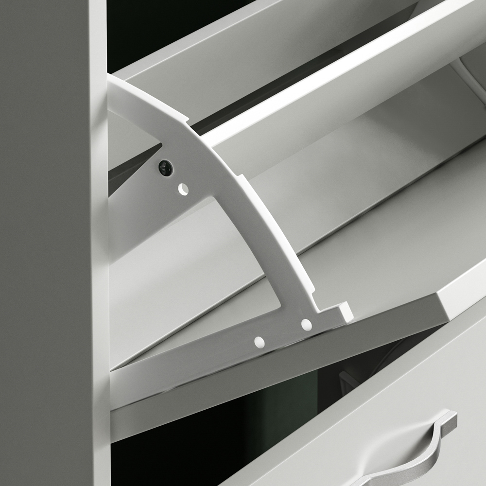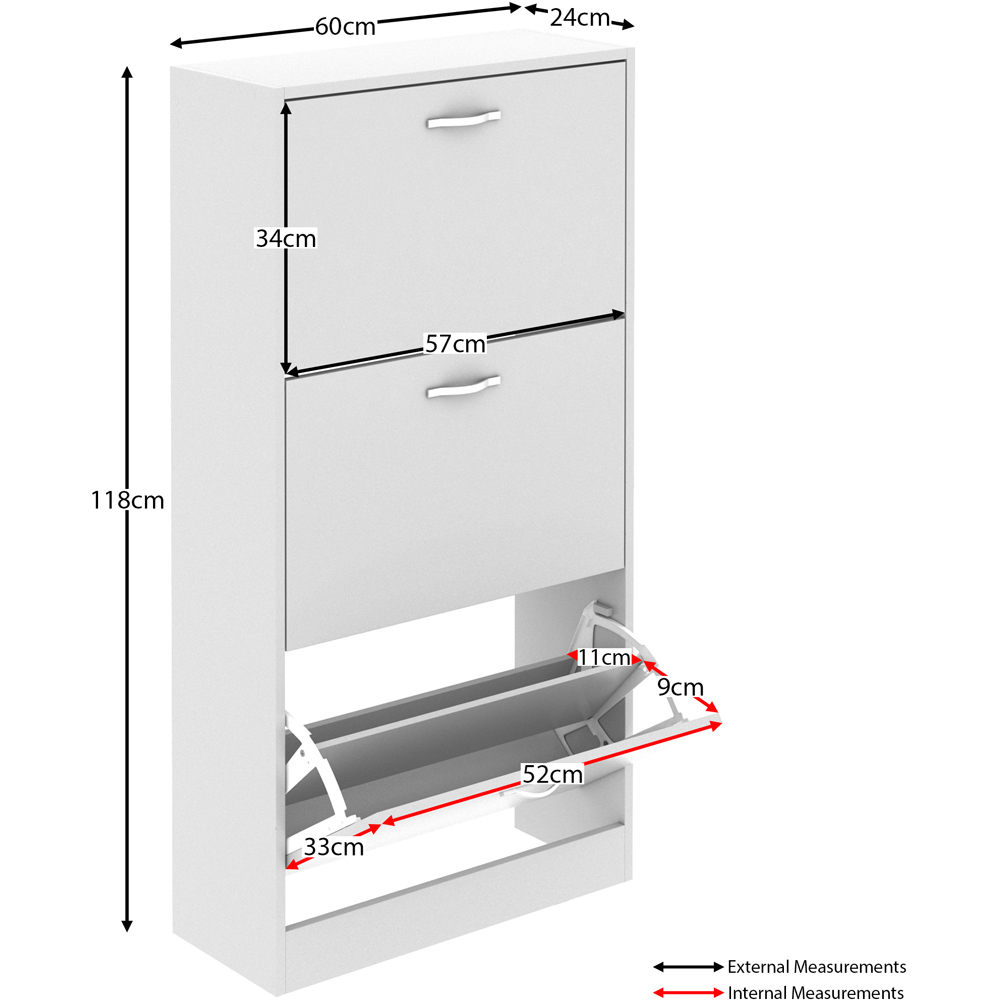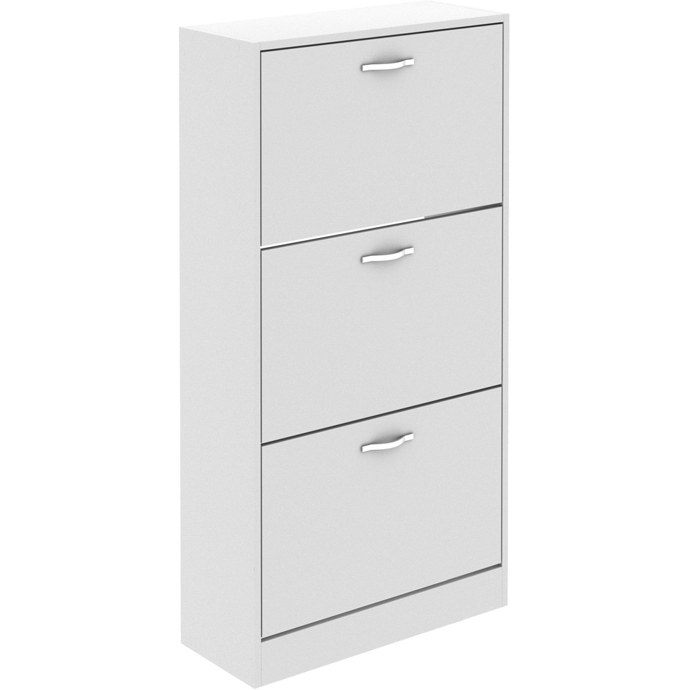 The Vida Designs 3 Drawer White Shoe Cabinet is the perfect solution for organised shoe storage. Crafted from durable particle board, its modern design complements any décor. Sleek stainless steel handles add a touch of elegance and easy access to three drawers, each holding three or four pairs of shoes depending on size and style. A practical and compact addition to any room, from entryway to bedroom. Easy-to-follow assembly instructions are included. Please note: the colour may vary slightly depending on your screen and home lighting. Weight limit: 5kg per shelf.