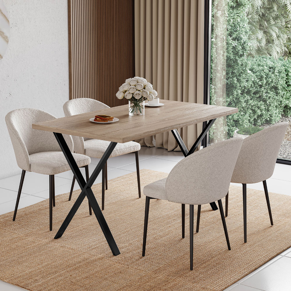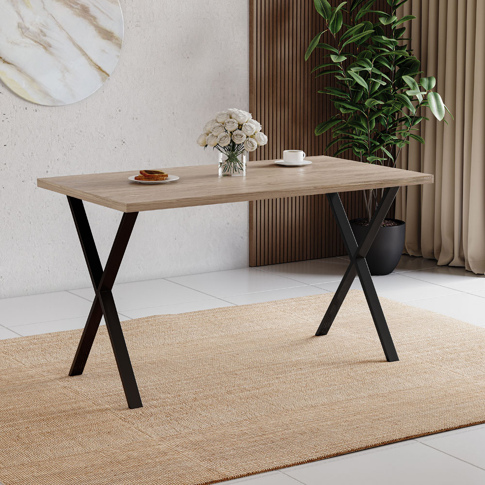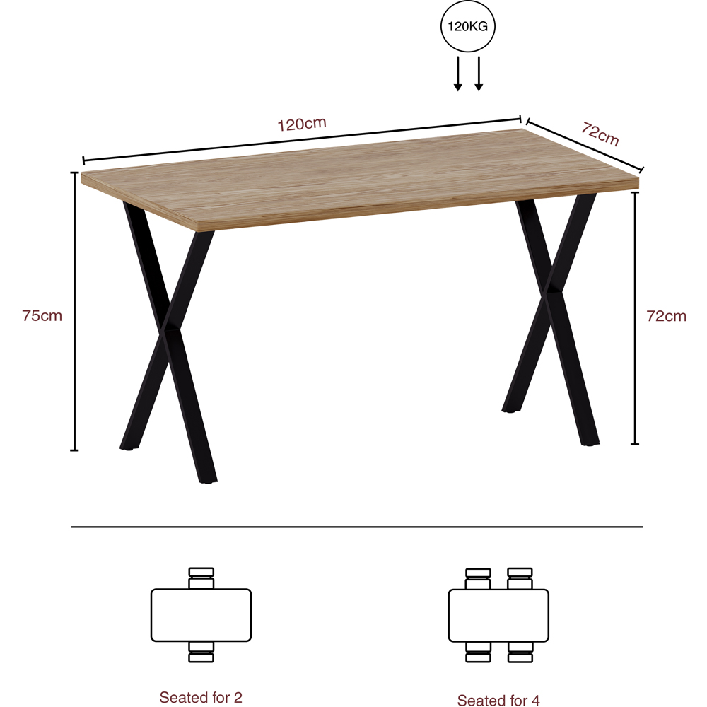 Introduce an air of sophistication to your dining space with the Vida Designs Oak Effect Dining Table. This four-seater table boasts a sleek, smooth top and a lightweight design, making it both practical and stylish. Supported by sturdy, X-shaped iron legs, it offers exceptional stability while adding an industrial touch to your home.