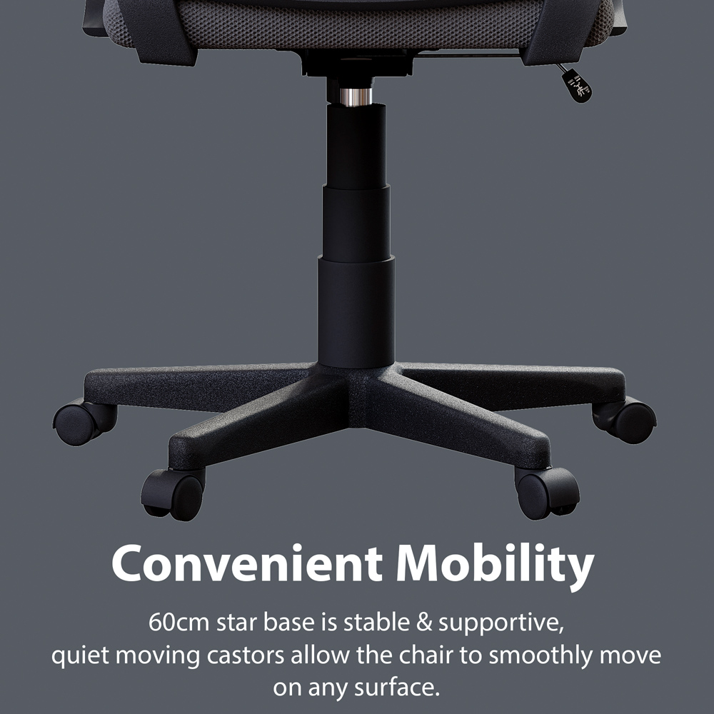 Upgrade your workspace with the stylish Vida Designs Airdrie Grey Office Chair. Boasting a smart design, this chair is perfect for conference rooms, home offices, and workstations. Enjoy the thick, foam-padded seat, upholstered in soft fabric, while the curved backrest, covered in breathable mesh, offers superb comfort and lumbar support, allowing air to circulate freely.