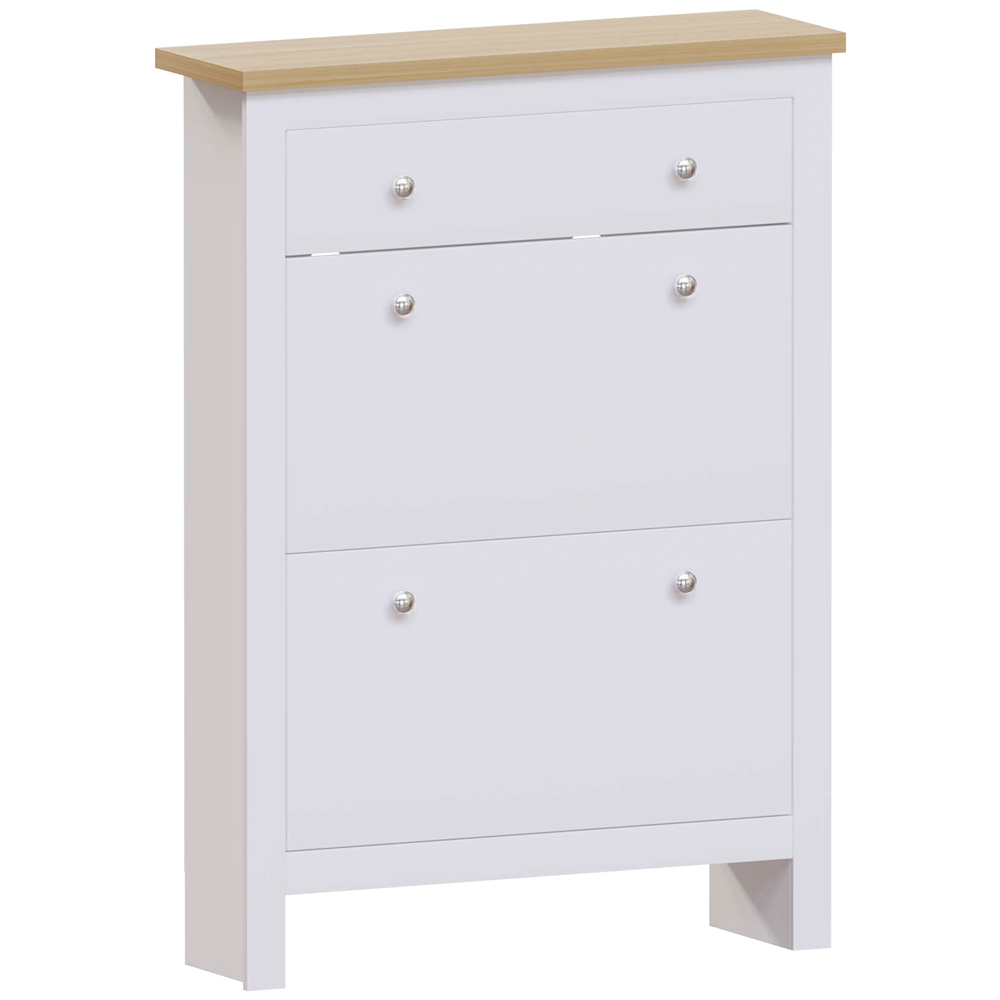 The Arlington White Shoe Cabinet offers ample storage for your footwear and accessories. Its two-door design keeps shoes neatly contained, while an additional drawer provides extra space. The shaker style and white and oak finish add a touch of elegance, complementing various décor styles. Constructed from durable MDF and particle board, this cabinet is built to last. Easy-to-follow instructions are included for self-assembly. Each shelf and the drawer support a weight limit of 5kg. Please note: the actual colour may vary slightly depending on your screen settings and home lighting.
