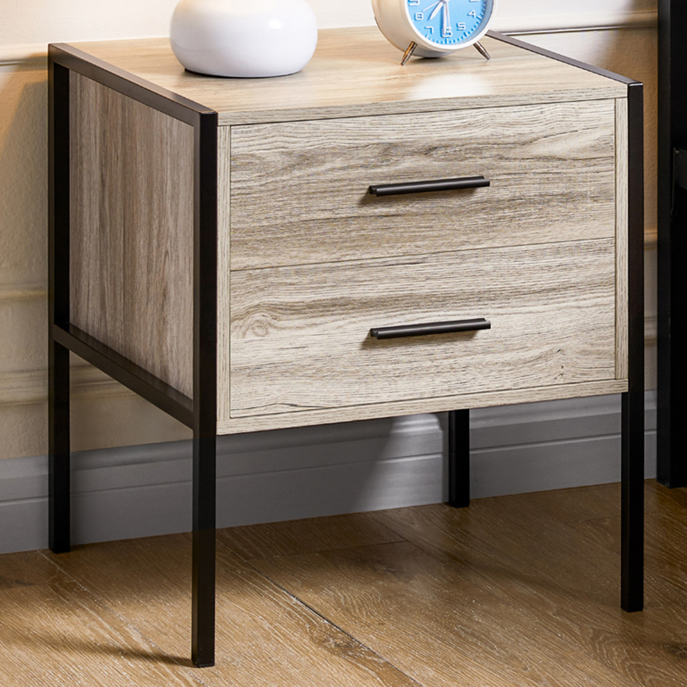 Vida Designs Brooklyn 2 Drawer Dark Wood Industrial Bedside Table