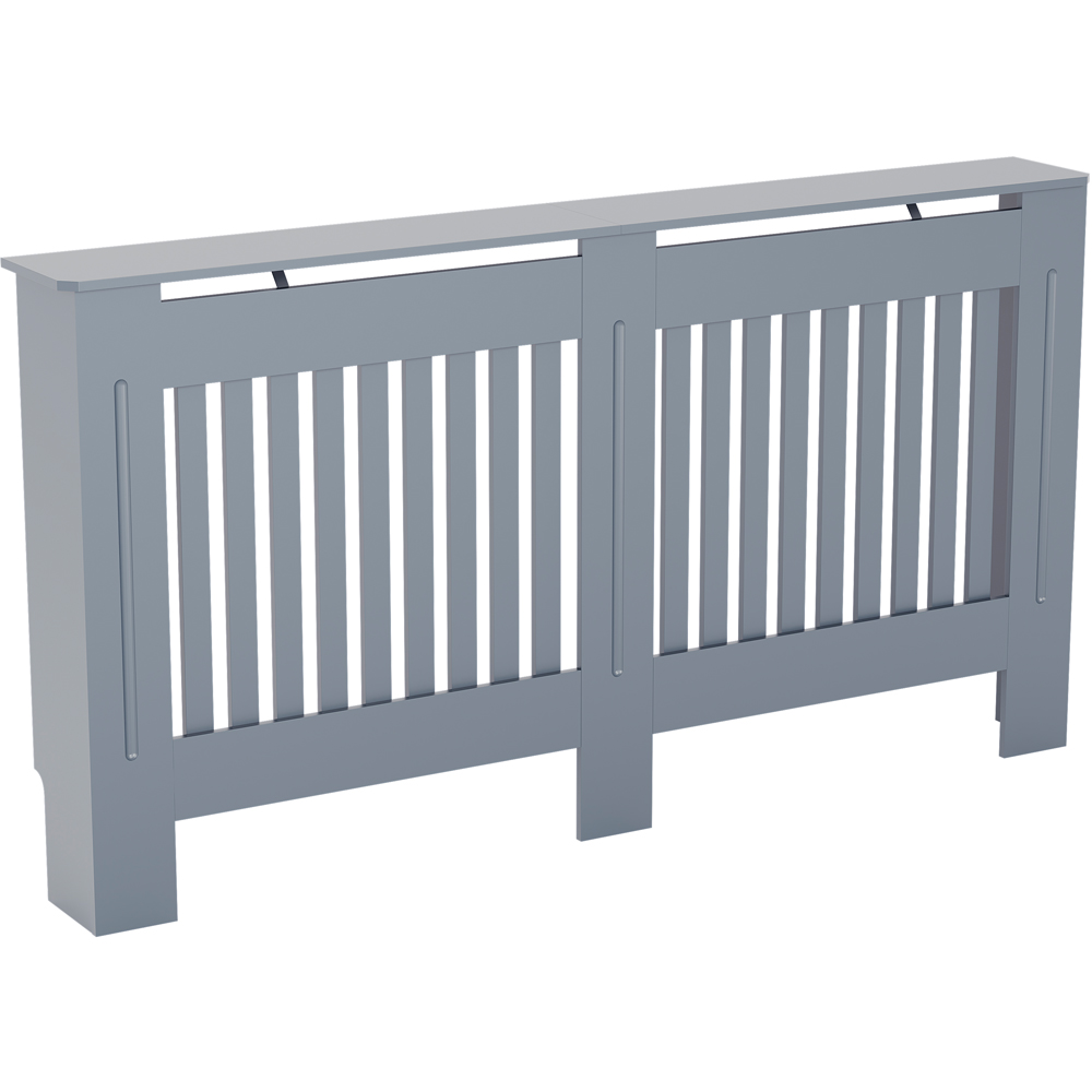 Enhance your interior with the Vida Designs Chelsea Dark Grey Large Radiator Cover, expertly built from durable MDF and finished in a sleek, powder-coated coating for a modern touch. Its vertical slats ensure excellent heat circulation, while the flat top offers space for decor or storage. Designed with safety in mind, it conceals radiators and protects children and pets. It combines elegance, practicality, and peace of mind in one smart solution.