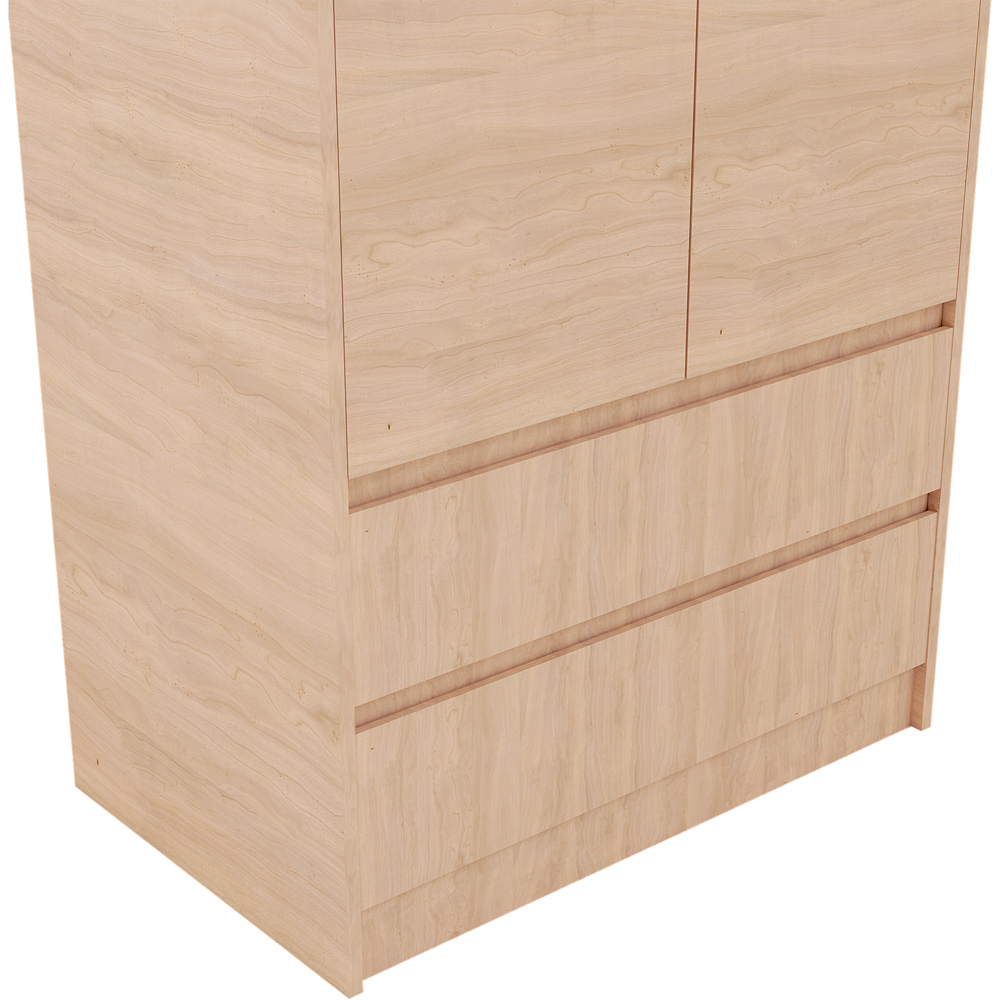 Give your bedroom a fresh and modern look with the Vida Designs Denver Pine 2 Door 2 Drawer Wardrobe. This elegant piece combines style and function, making it easy to keep your clothes and essentials neatly organised. It features two doors and two spacious drawers, all designed with a sleek handleless finish for a clean, modern look. Inside, you will find a sturdy hanging rail that offers plenty of space for shirts, jackets, and dresses, while the drawers are perfect for folded clothes or accessories. Made from solid MDF and chipboard, this wardrobe is built to last. The hanging rail holds up to 15kg, and each drawer can support up to eight kilograms of weight. Please note that this product comes flat-packed and requires self-assembly. Easy-to-follow instructions are included. Colour may vary slightly due to screen settings and lighting.
