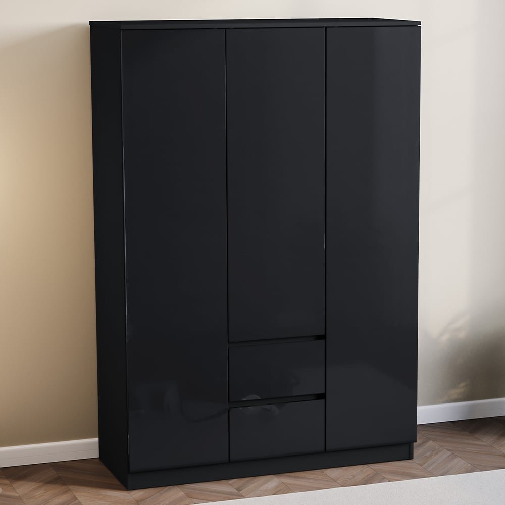 Bring modern elegance to your bedroom with the Vida Designs Glinton Grey 3 Door 2 Drawer Wardrobe. Designed with both style and function in mind, this wardrobe is a smart storage solution that looks great in any contemporary space. Made from sturdy engineered wood, it offers strength and stability. The UV and melamine finish not only gives it a sleek look but also protects against scratches, moisture, and everyday wear and tear. Behind three doors, you will find plenty of space for hanging clothes and storing folded items on shelves. The two lower drawers offer extra room for accessories, bed sheets, or other essentials. With a handleless design, the wardrobe has a clean, modern feel and is also safe, with no handles sticking out.