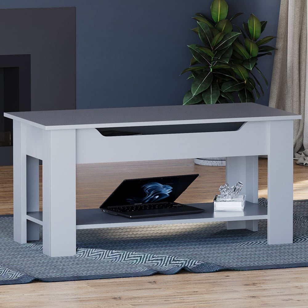 Introduce a touch of modern elegance to your living room with the Vida Designs Grey Lift Up Coffee Table. This sleek coffee table is more than just a surface; it's a versatile piece designed to enhance your living space. Constructed from durable particleboard, it features a clever lift-up tabletop that reveals a hidden storage compartment – perfect for stashing away living room essentials and keeping clutter at bay.