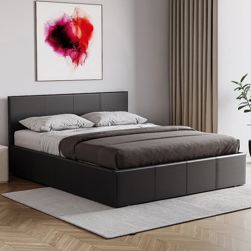 Introducing the Lisbon King Size Ottoman Bed from Vida Designs – where sophistication meets practicality. Finished in luxurious black faux leather, this bed brings a touch of elegance to any bedroom. Its sleek, modern design effortlessly enhances your contemporary space.