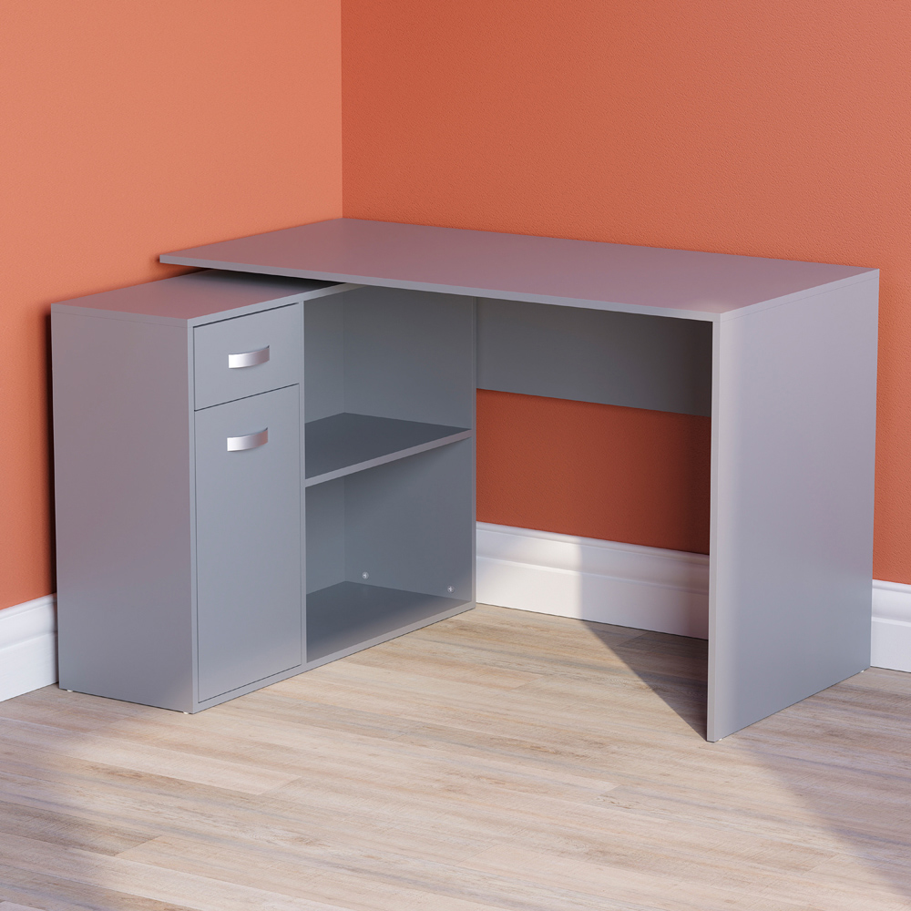 The Vida Designs Longton Adjustable Computer Desk provides a flexible and practical workspace, ideal for either the home or office. Designed for versatility, this desk can be configured as a flat wall desk or an L-shaped corner desk, making it a superb choice where space is limited. With two open shelves, a sliding drawer and a cabinet, there's plenty of room for your personal belongings. The sleek, contemporary design of this desk brings a touch of style to any room.