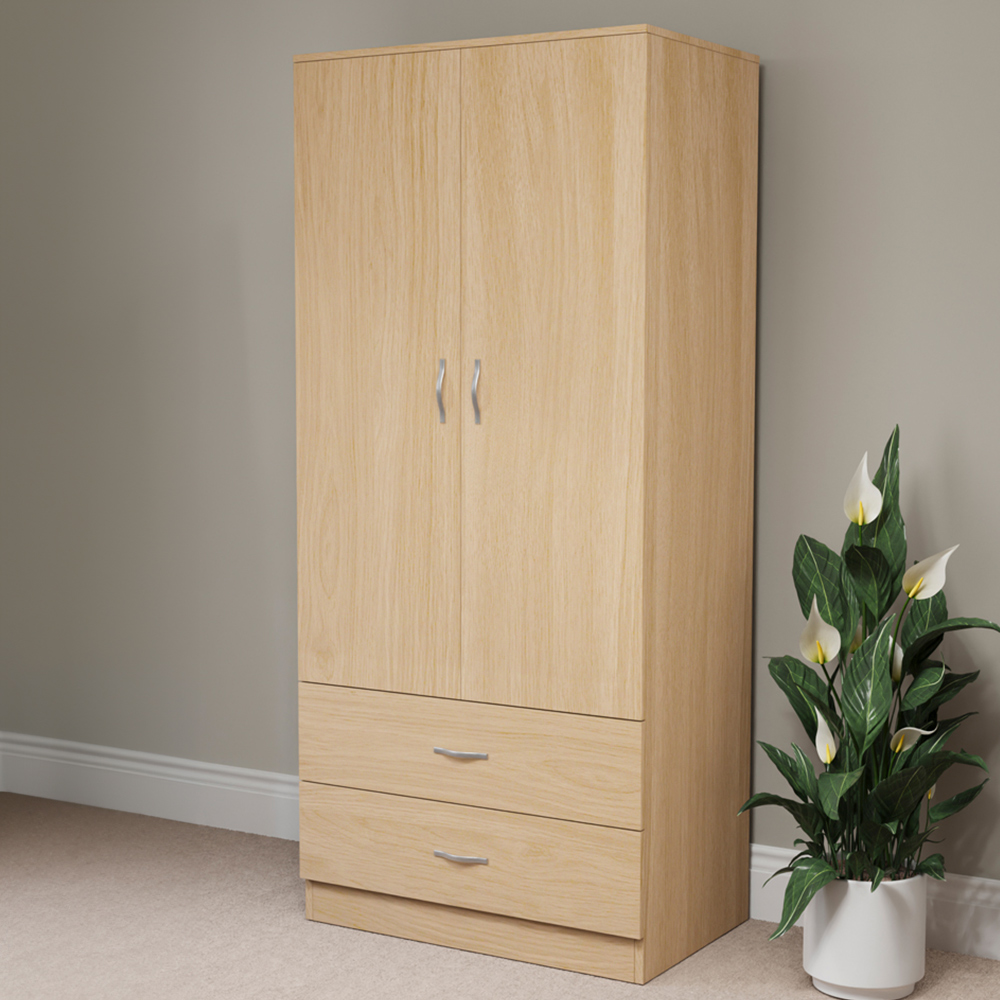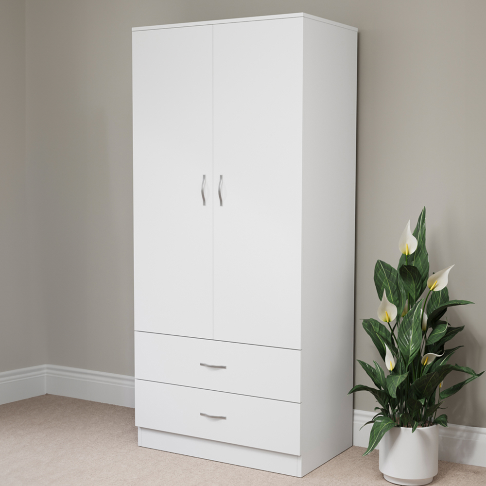 Introduce sophisticated storage to your bedroom with the Vida Designs Riano 2 Door 2 Drawer Wardrobe. Marrying contemporary style with practical design, this green wardrobe provides a versatile aesthetic suitable for both modern and traditional interiors. Inside, discover a generously sized main compartment complete with a hanging rail, perfect for organising a variety of garments. Below, two smoothly gliding drawers offer additional space for accessories or footwear. More than just a stylish addition, this all-in-one storage solution is built to last, ensuring a tidy and fashionable bedroom for years to come.
