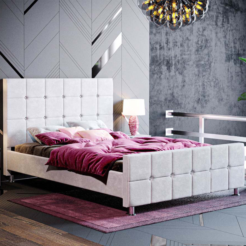 Vida Designs Valentina King Size Light Grey Velvet Bed Frame