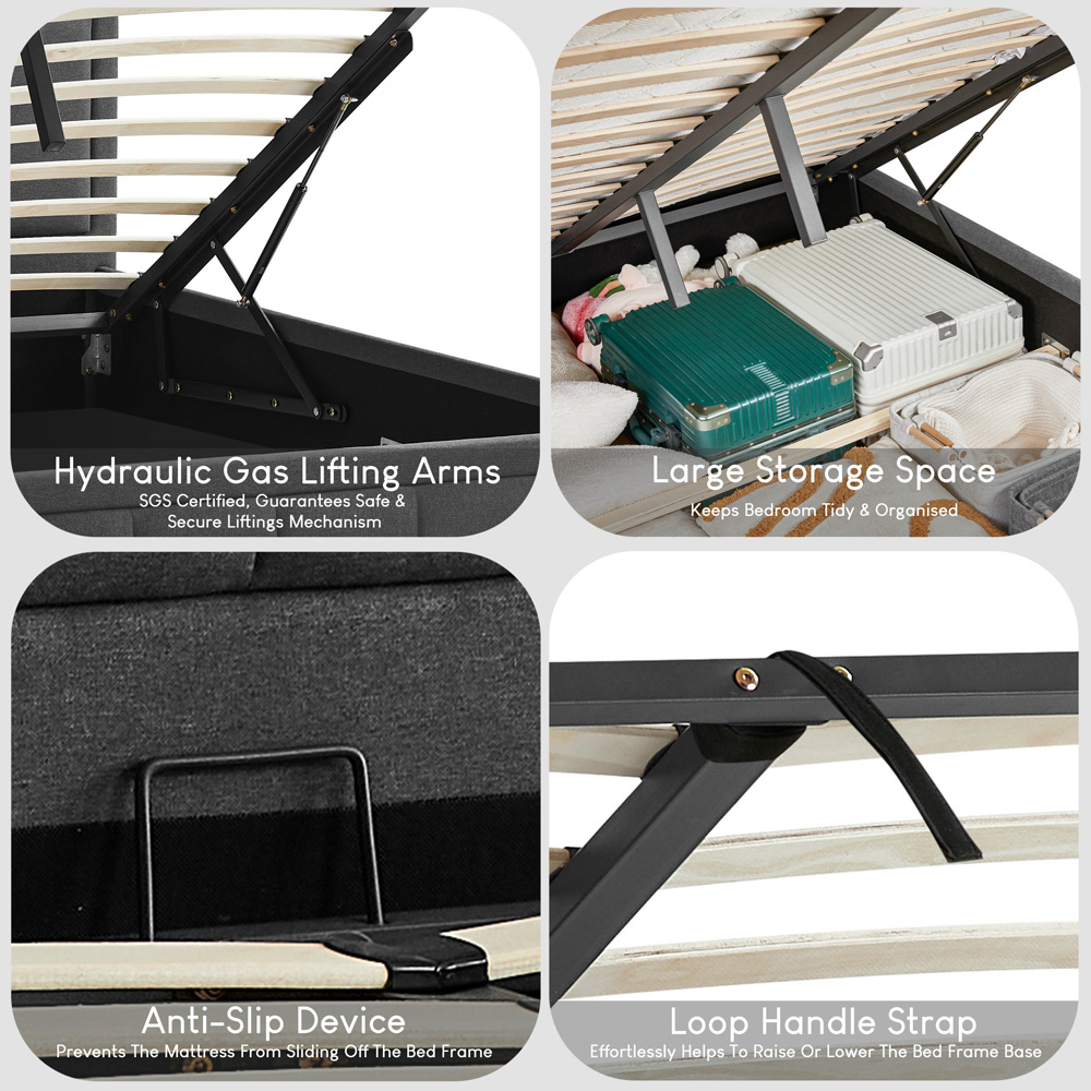 Introducing the Vanita double ottoman bed frame from Vida Designs. Finished in a sophisticated dark grey, this bed frame offers both style and practicality for any bedroom. Constructed from durable linen, foam, plywood, and non-woven fabric, the Vanita ensures long-lasting quality and exceptional comfort. Designed to withstand daily use, this robust bed also features a supportive headboard, perfect for relaxing while reading, watching television, or simply unwinding after a long day.