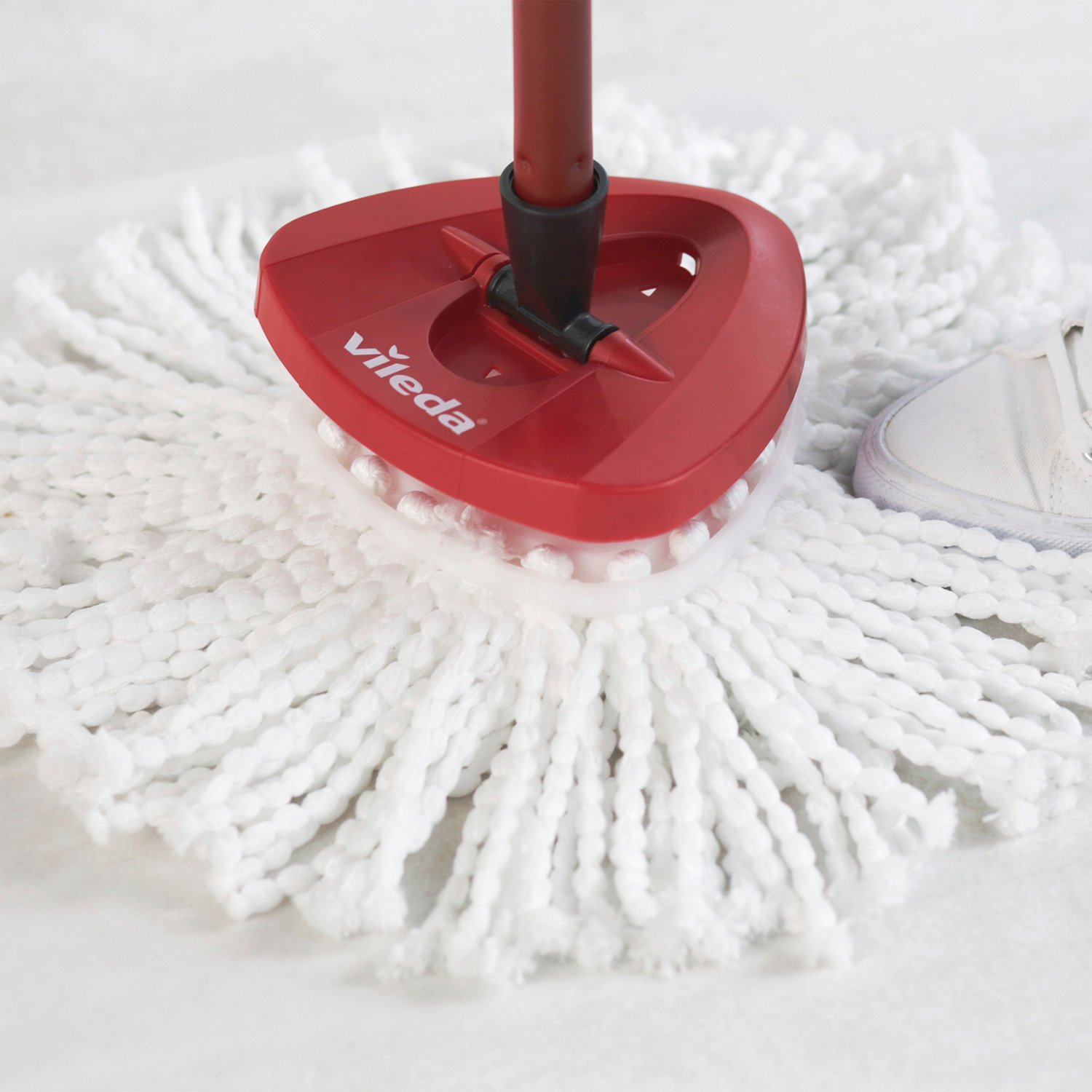 Upgrade your cleaning routine with the Vileda Turbo Refill Microfibre Mop. Designed for use with Vileda Turbo mops, its absorbent microfibres effortlessly tackle greasy dirt. The unique triangular head shape ensures thorough cleaning, reaching even hard-to-reach corners for a sparkling clean home. Effortless wringing and superior absorbency make quick work of cleaning, leaving your floors fresh and spotless.