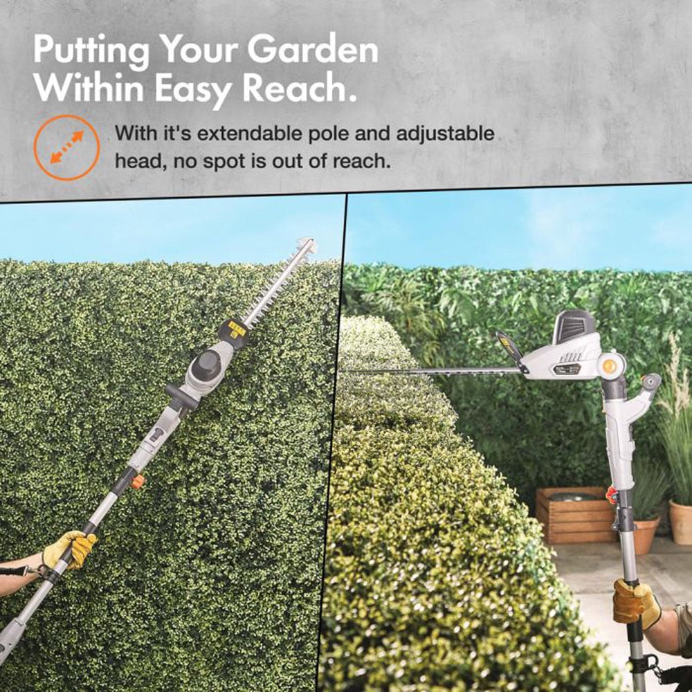 Shape up your garden with the VonHaus pole hedge trimmer. Featuring dual-action, laser-cut 45cm steel blades, it makes light work of branches and twigs up to 20mm thick. Carve, trim and shape away with ease.