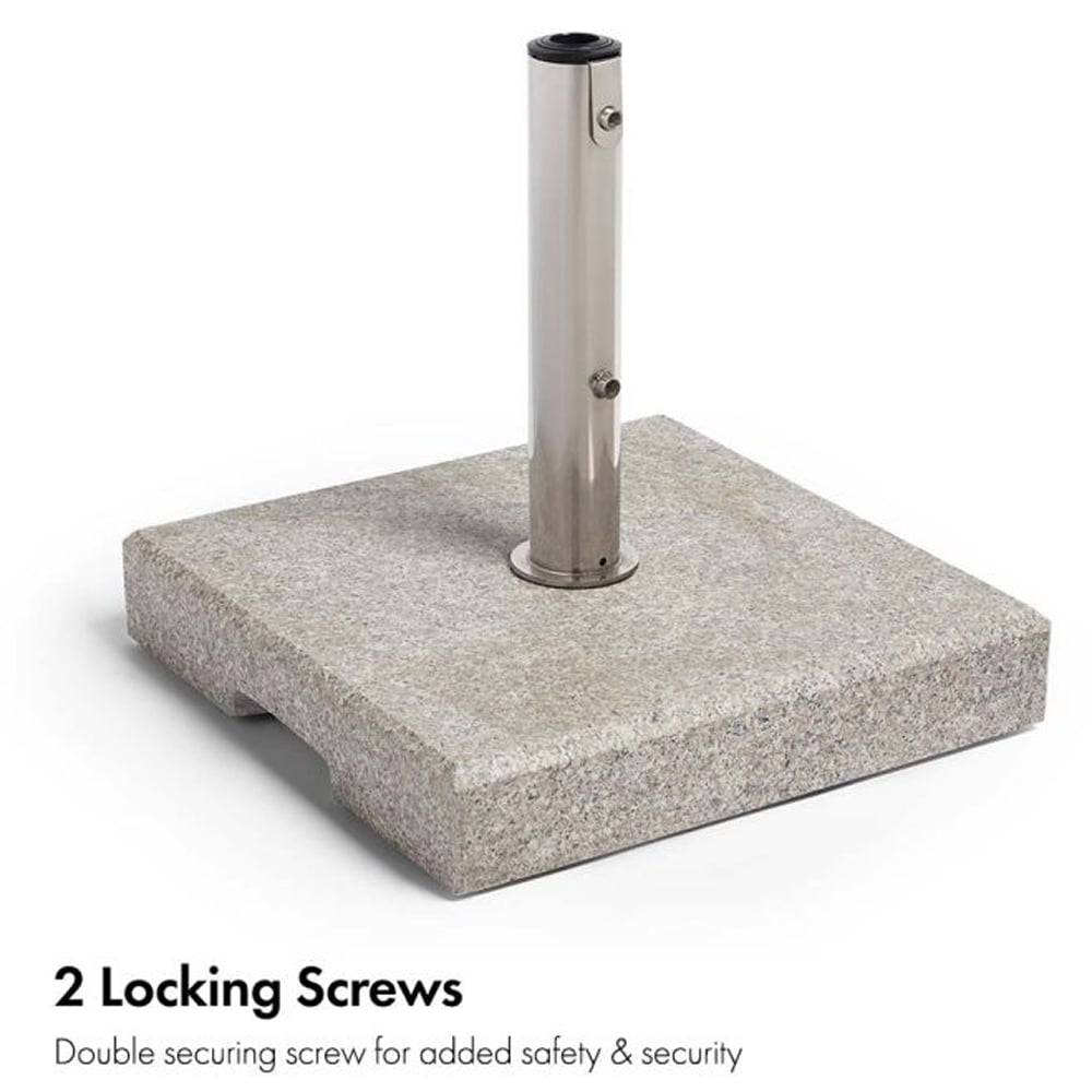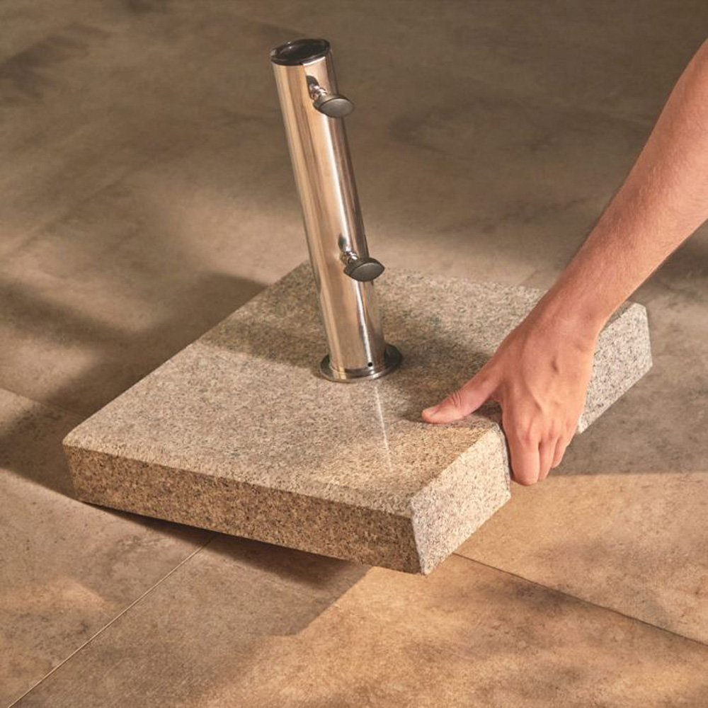 If you're looking for the perfect complement to sun-drenched days, this granite parasol base might be the answer. Beautifully crafted from polished granite, its sleek design adds a touch of elegance to any outdoor space. Functionality hasn't been overlooked either; we've incorporated carry handles for effortless repositioning around your garden or patio. What's more, it boasts three different pole adaptors (2.5 / 3.2 / 3.8cm and 4.8 cm without adaptor), ensuring compatibility with a wide array of parasol pole diameters. Made from premium stone, this base provides both beauty and versatility.